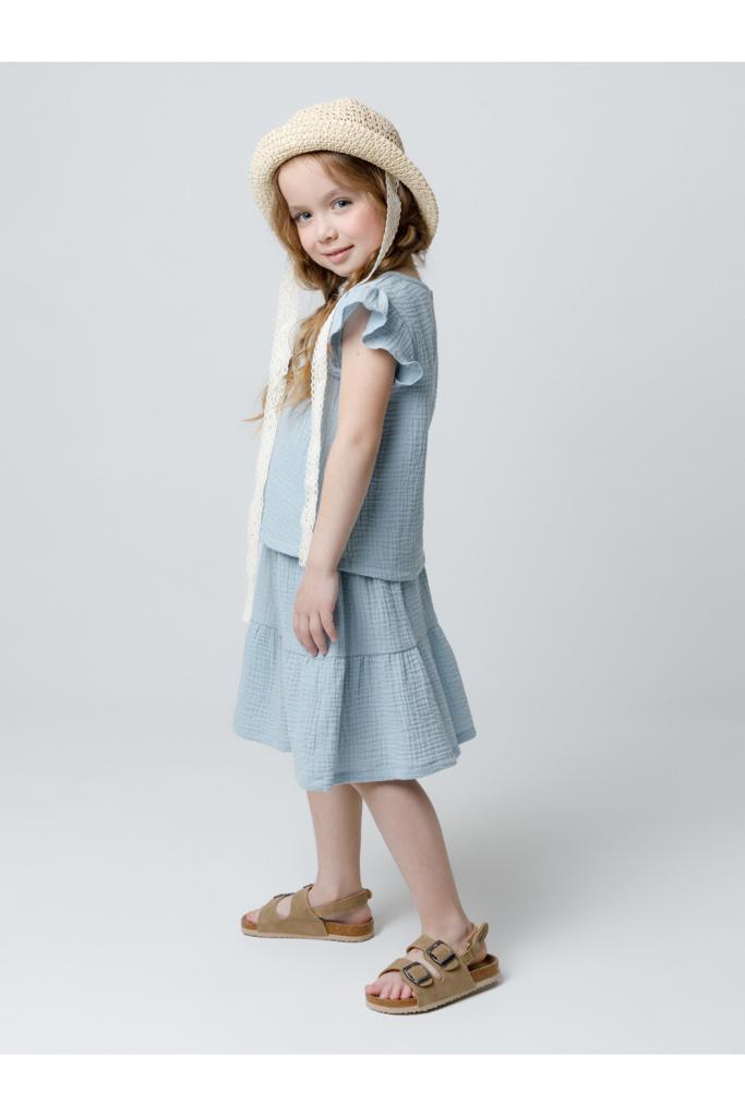 Легкая юбка для девочки из мягкого хлопкового муслина. По низу красивая оборка. Изделие сохраняет цвет, форму и фактуру жатости после многократных стирок.