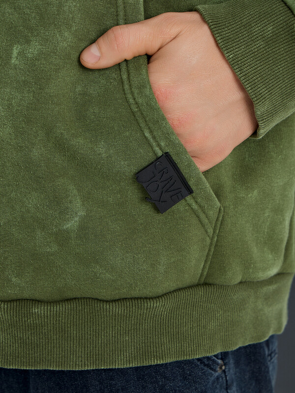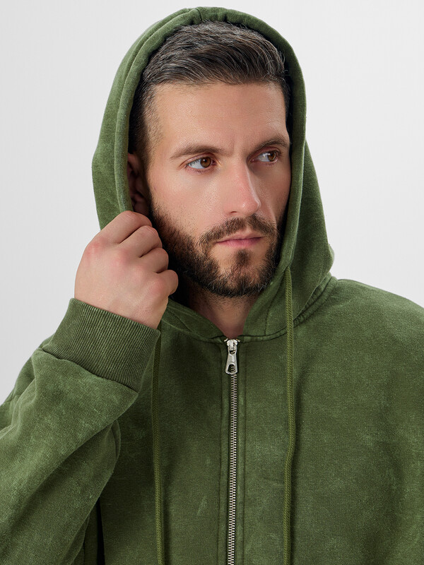 Горловина округлой формы с капюшоном. Капюшон со средним швом на подкладке из основного полотна. На внешней стороне пробиты петли и втянут шнур (8КXW-1 8мм) с эглетами. Шов втачивания капюшона по горловине спинки закрыт тесьмой хб (10 мм).Рукав втачной, длинный с отрезными манжетами из рибаны. Линия плеча спущена.