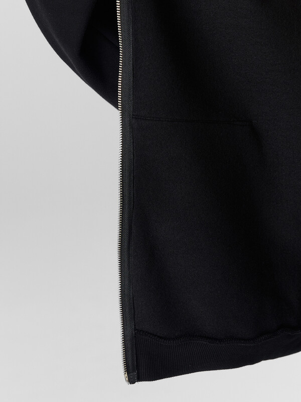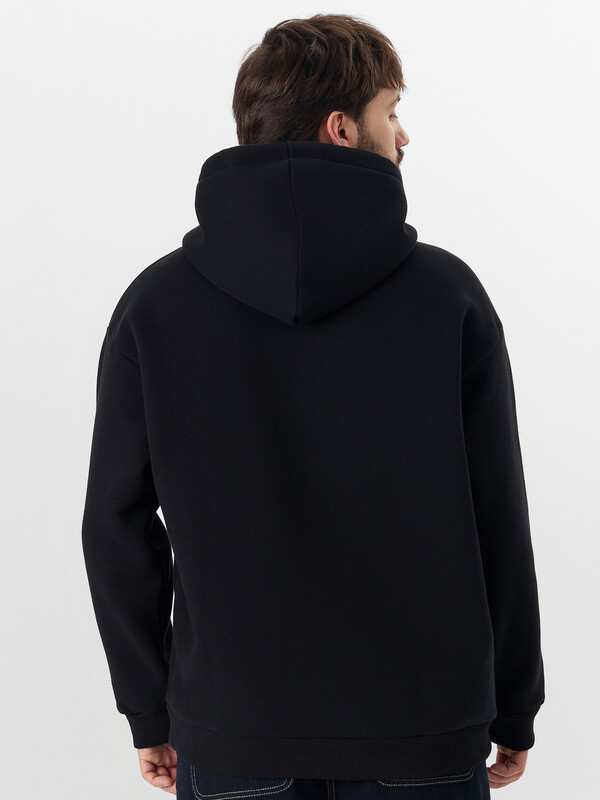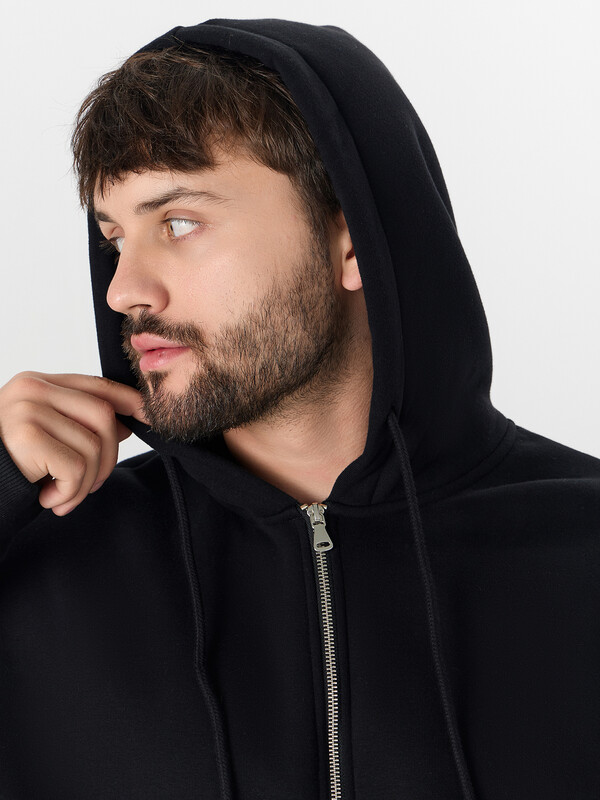 Горловина округлой формы с капюшоном. Капюшон со средним швом на подкладке из основного полотна. На внешней стороне пробиты петли и втянут шнур (8КXW-1 8мм) с эглетами. Шов втачивания капюшона по горловине спинки закрыт тесьмой хб (10 мм).Рукав втачной, длинный с отрезными манжетами из рибаны. Линия плеча спущена.
