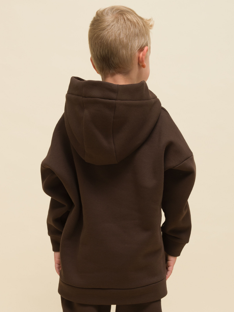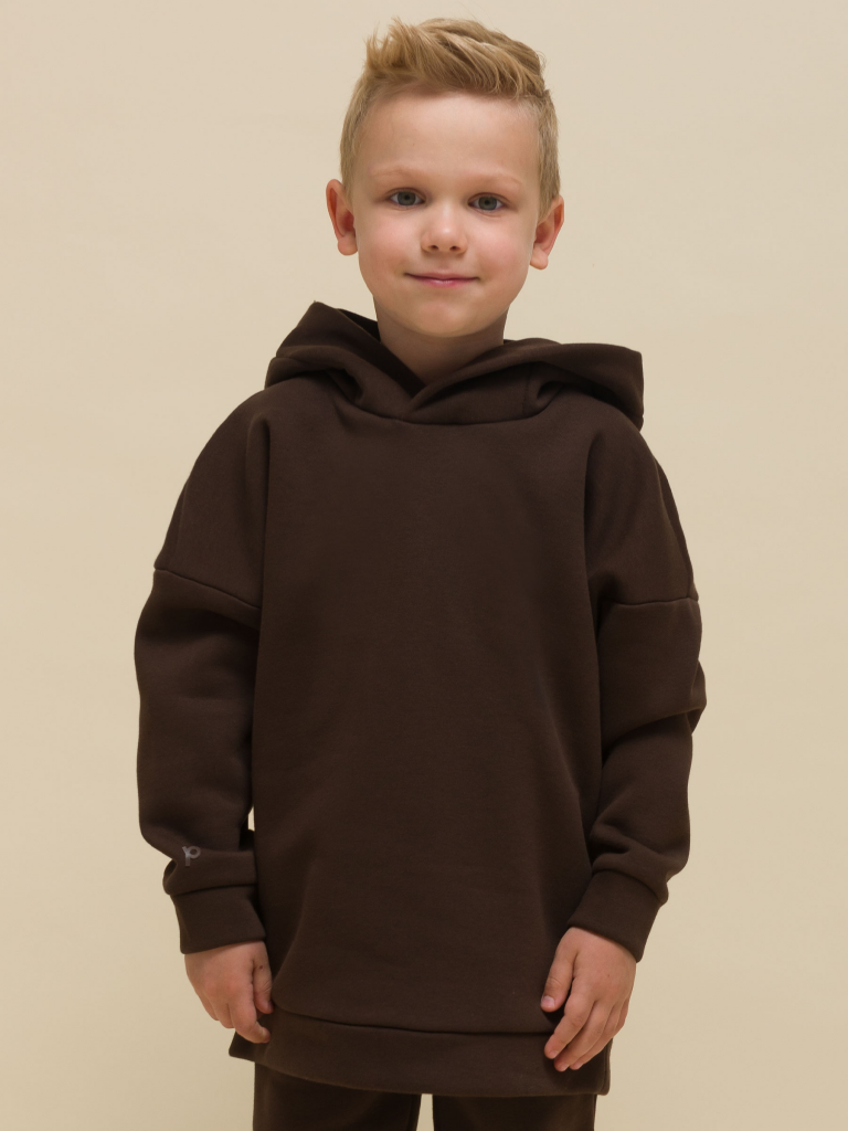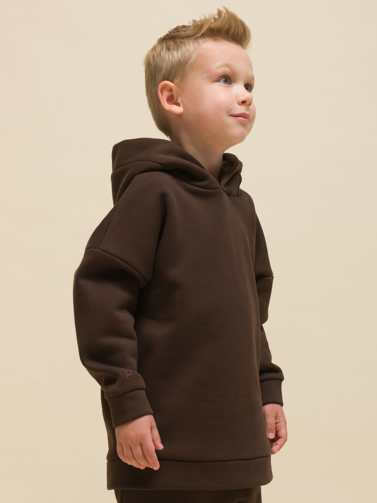 Худи для девочек и мальчиков из футера с начесом свободного силуэта с длинным рукавом, без карманов. Это однотонная базовая вещь для детского гардероба. Красивая и яркая одежда для ребенка, практичная и удобная при надевании для родителей. Двухшовный капюшон с подкладом из основного материала аккуратно ложится по голове и убережет от холода. Манжеты рукавов и низа изделия из основной ткани. Не утягивают, но придают силуэт. Деликатная изюминка модели - силиконовая буква P из логотипа бренда на правом рукаве.