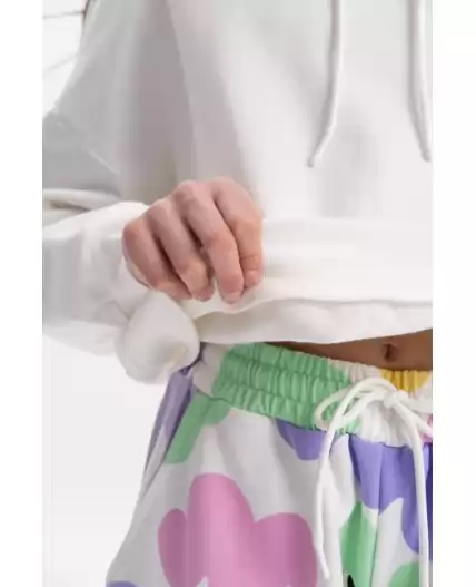 Модную толстовку с принтом из высококачественного хлопкового футера можно носить круглый год весной, летом, осенью и зимой. Свитшот с капюшоном подойдет для повседневной носки на занятия, в школу, в сад и на прогулку. Короткая кофта идеальна для девочки подростка в виде подарка на любой праздник.