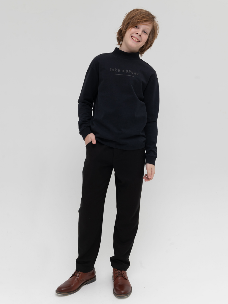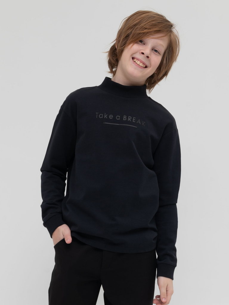 Школьный свитшот для мальчика из хлопкового футера. Материал почти не мнётся, не электризуется, отлично впитывает влагу. Мягкий и простой в уходе. Свободный силуэт, спущенное плечо. Воротник стойка хорошо держит форму. Выпуклый резиновый принт Тake a break на груди переводится как Возьми паузу. Легко комбинируется с брюками, джинсами и шортами. Современный образ и практичность то, что нужно любому юноше. Не удивляйтесь, что он не захочет её снимать.