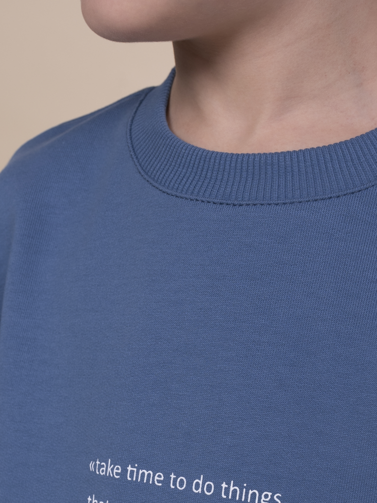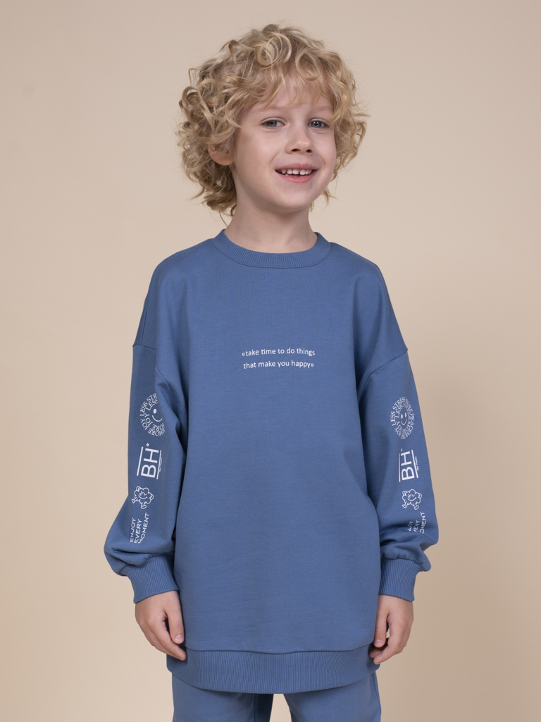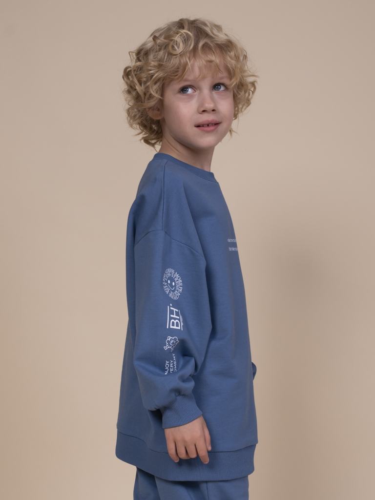 Свитшот оверсайз из футера для мальчика. 100% хлопок в составе – ткань мягкая, дышащая, приятная на ощупь. Спущенное плечо, широкий рукав и свободный крой – настоящий трендовый оверсайз. Горловина, рукав и низ изделия на манжете из рибаны - плотно прилегает и не давит, отлично тянется. Принты на рукавах и надпись спереди – добавляет образу элегантность и настраивает на позитив. Подходит для создания стильного образа в паре с джоггерами и футболкой. Идеален на каждый день, для прогулок и активного отдыха. Размерная линейка: 1 (86): 2 (92): 3 (98): 4 (104): 5 (110): 6 (116): 7 (122): 8 (128): 9 (134): 10 (140): 11 (146). Модель представлена в универсальных цветах – черный, джинс и песочный. Выбирайте нужный размер по таблице размеров на фото. Цвет товара на экране вашего устройства может отличаться от цвета изделия вживую.