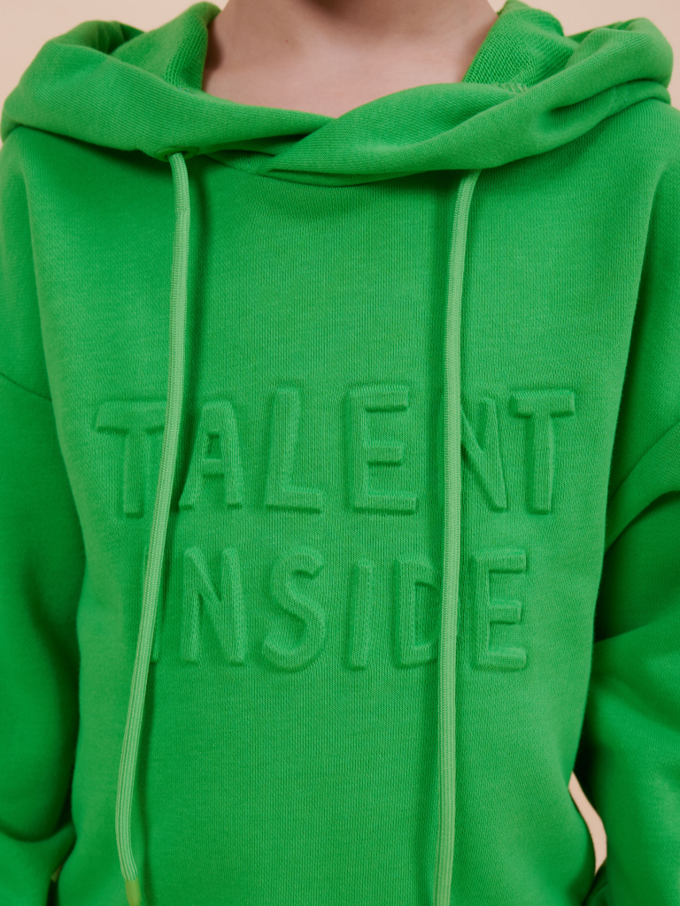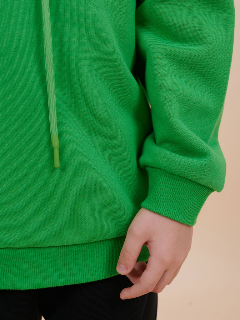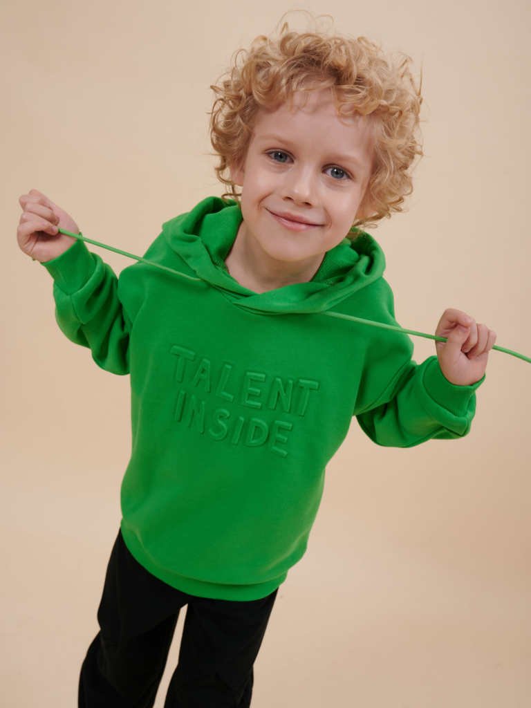Толстовка для мальчика свободного кроя – актуальная вещь в любом сезоне. Уютное худи для мальчика с капюшоном незаменимо дома и на прогулке. Трикотажная толстовка для мальчика подростка с капюшоном выполнена с высоким содержанием хлопка и добавлением в состав эластана. Приятный к телу материал отлично носится, не дает усадки, не линяет в процессе стирки и сохраняет красивый внешний вид. Хлопок хорошо пропускает воздух, наделяет необходимой гигроскопичностью – ребенок активно двигается, играет, не потеет. Детское худи для мальчика из материала футер-петля. Изделие свободного кроя оверсайз со спущенным плечом, углубленной проймой. Рукава и низ на манжете из риба. Капюшон на запахе, с люверсами и шнурками для регулировки. Изделие выполнено в однотонном цвете на выбор: бежевый, черный, зеленый. Худи для мальчика подростка оверсайз спереди декорировано выпуклым пресс-принтом: "Talent inside" - перевод "Талант внутри". Толстовка оверсайз рассчитана на возраст садика и школы. Понравится как малышам, так и школьникам и подросткам. Размерная линейка: 1 (86): 2 (92): 3 (98): 4 (104): 5 (110): 6 (116): 7 (122): 8 (128): 9 (134): 10 (140): 11 (146). Худи для мальчика - отличный подарок для сына, внука, братика, племянника, крестника! Выбирайте нужный размер по таблице размеров на фото. Цвет товара на экране вашего устройства может отличаться от цвета изделия вживую.