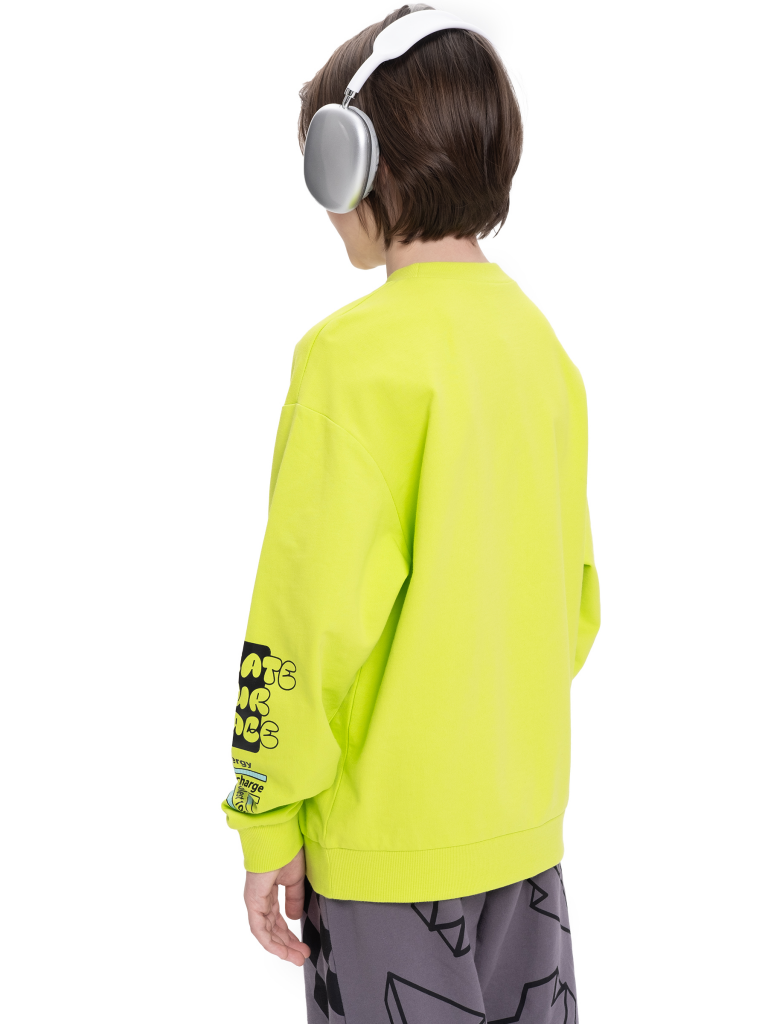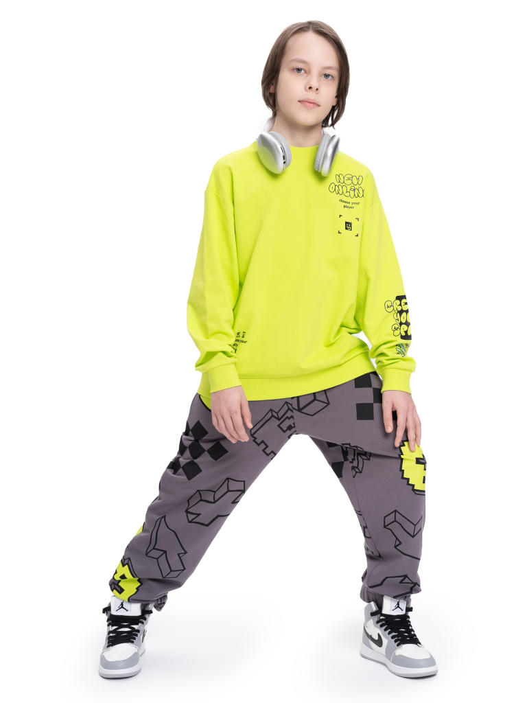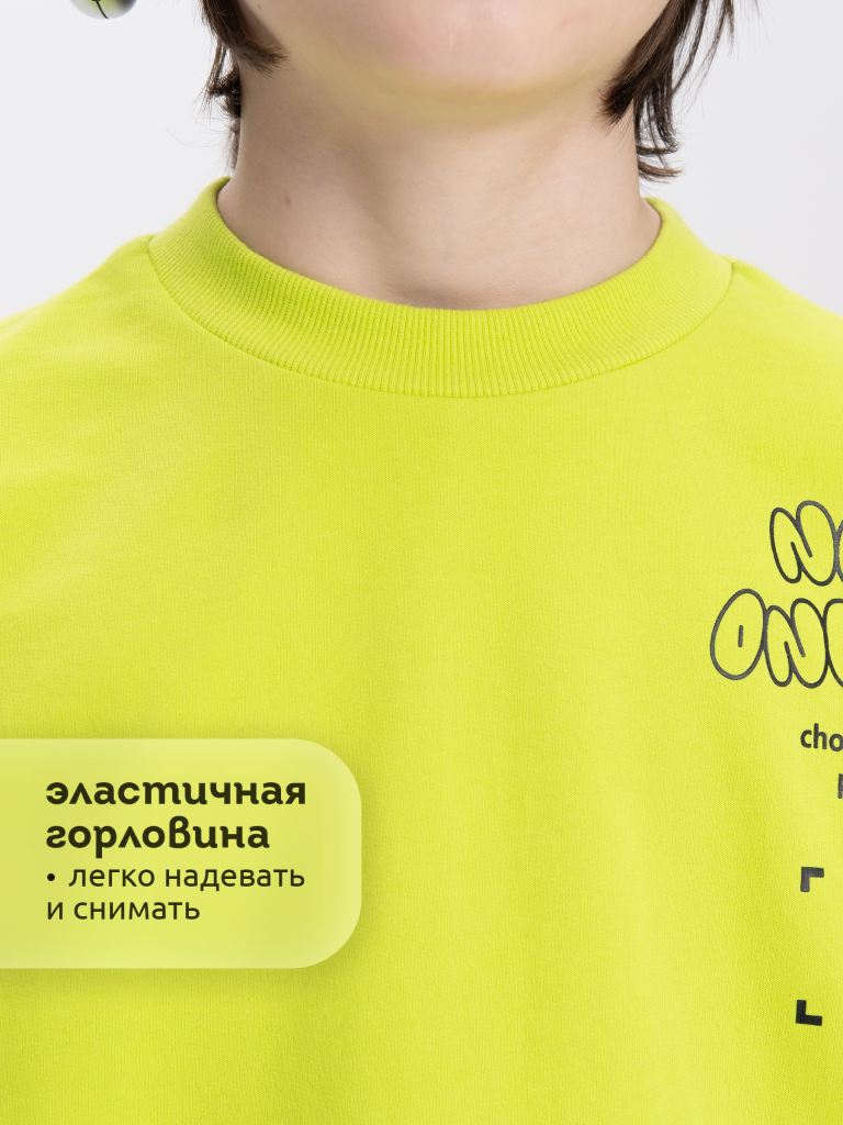 Свитшот без начеса из материала футер-петля. Манжеты и низ изделия из рибаны. По переду принт в виде смайлика, а также текстовый принт. Перевод надписи: "new online" - новый онлайн, "choose your player" - выбери своего игрока, "create your reality" - создай свою реальность. Рукав также украшен принтом с надписью. Перевод надписи "create your space" - создавай свое пространство, "energy, power-ups, coolest-100%" - энергия, бонусы, крутость - 100%. В составе ткани преобладает высококачественый хлопок — спортивная кофта приятна на ощупь и прекрасно пропускает воздух. Тонкую весеннюю кофту можно носить круглый год. Подходит для любителей корейской и японской моды, стиля аниме. Широкая размерная сетка подойдет как для малыша так и для подростка.