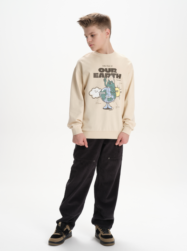 Свитшот без начеса из материала футер-петля. Манжеты и низ изделия из рибаны. Толстовка весенняя украшена выпуклым принтом с надписями. Перевод надписей: Take care of our Earth and youself" - заботьтесь о нашей Земле и о себе, "happy Earth day!" - счастливого дня Земли! "take care of me!" - "позаботься обо мне!" "m-m-m you're the best!" - "м-м-м ты лучшая!". В составе ткани преобладает высококачественый хлопок — спортивная кофта приятна на ощупь и прекрасно пропускает воздух. Тонкую кофту можно носить круглый год. Широкая размерная сетка подойдет как для малыша так и для подростка.