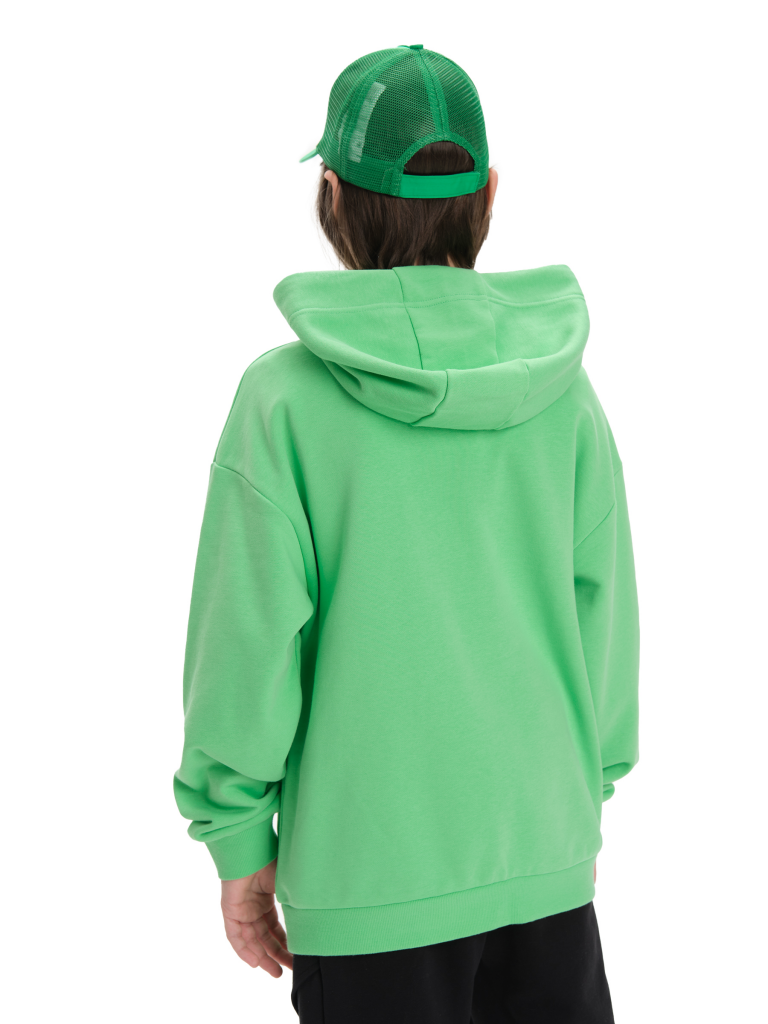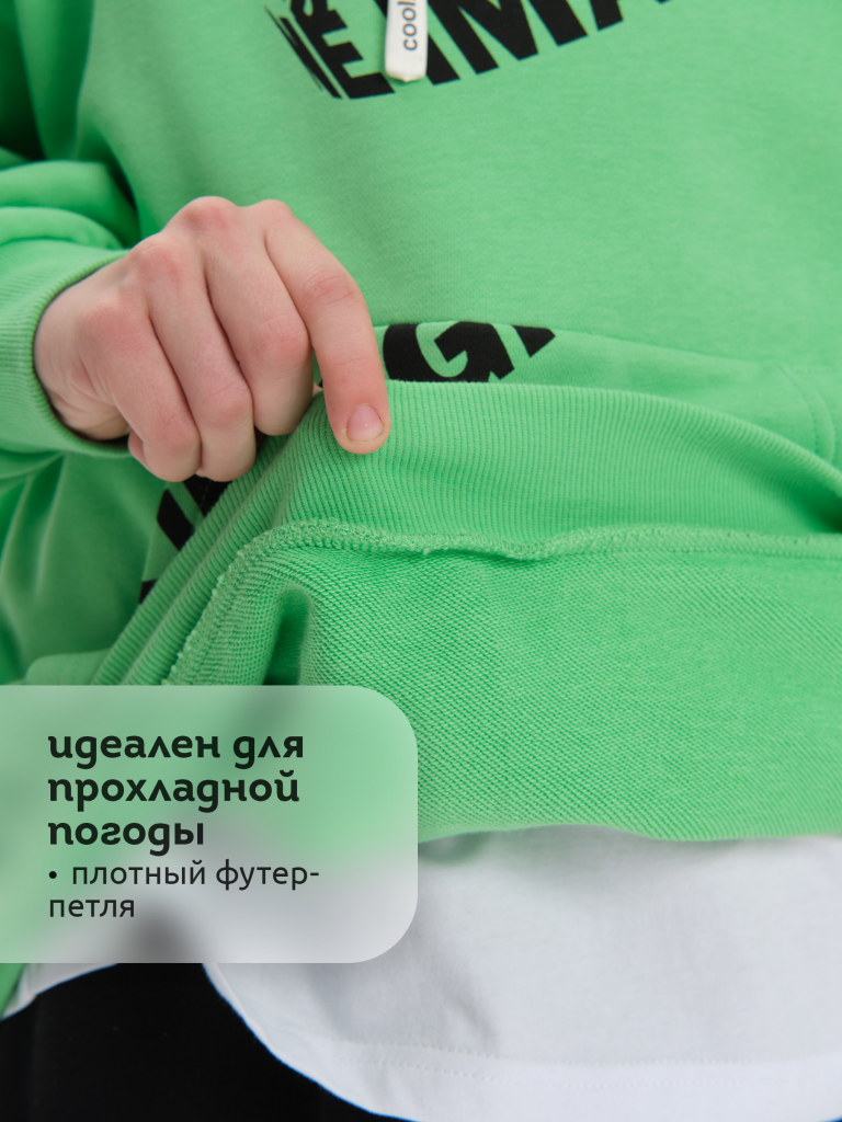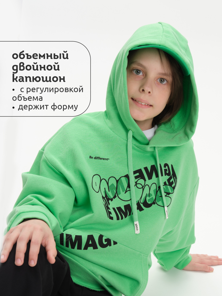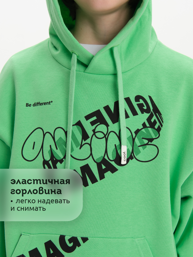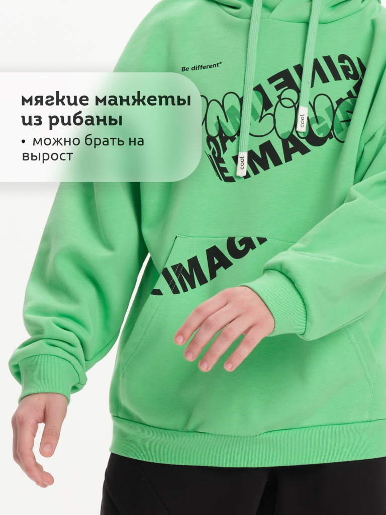 Худи для мальчика без начеса – актуальная вещь в любом сезоне, будь то весна, лето или осень. Кофта спортивная для мальчика выполнена из плотного футера-петля, который отлично согревает в прохладную погоду и при этом хорошо пропускает воздух – ребенок активно двигается, играет, не потеет. Толстовка свободного покроя оверсайз со спущенным плечом, углубленной проймой. Рукава а также низ изделия на манжете из рибаны. Удобный карман кенгуру. Капюшон на запахе со шнурками для регулировки. Изделие выполнено в актуальном стиле Digital и понравится юным геймерам, а также любителям одежды в корейском стиле и в стиле аниме. По переду текстовый принт. Перевод принта "be different" - будь разным, "imagine online" - представь себе онлайн. Размерный ряд подходит как для малышей так и для подростков.