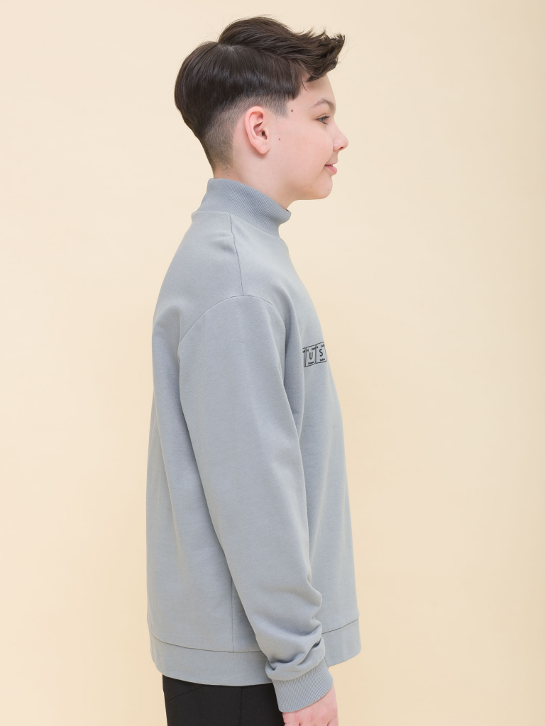 Толстовка из мягкого футера с высоким воротником-стойкой для мальчика. Модель выполнена из 100% хлопка — она дышащая, приятная на ощупь и очень комфортная. Воротник и манжеты выполнены из рибаны — не теряют форму, при этом толстовку удобно надевать и снимать. Изделие украшено мягким объёмным силиконовым принтом в виде слова «гений», написанного элементами таблицы Менделеева. Принт устойчив к многочисленным стиркам. Стильный и практичный вариант школьной одежды для мальчиков.