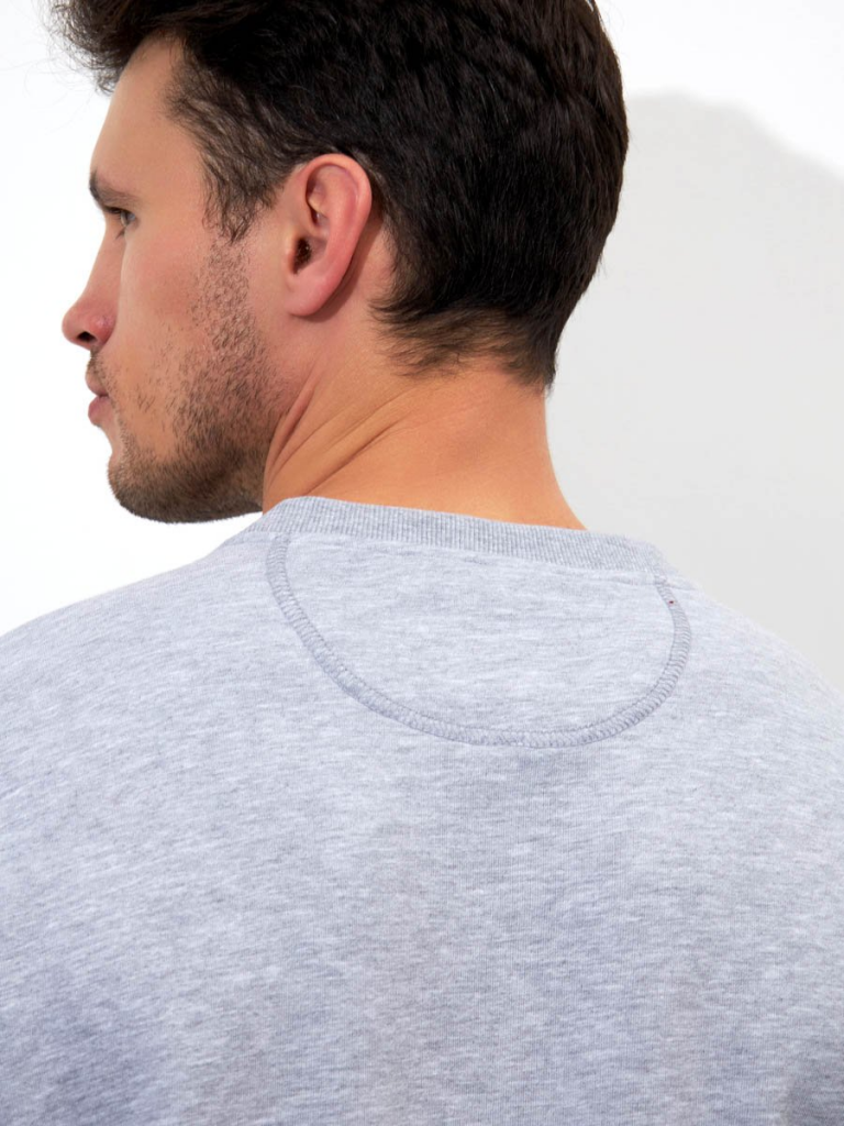 Уютная мужская толстовка F5 выполнена из хлопкового футера с добавлением полиэстера, что позволяет сохранять форму в процессе носки. Модель с круглым вырезом горловины и длинными рукавами не сковывает движений и обеспечивает наибольший комфорт. Манжеты рукавов, горловина и низ толстовки оснащены эластичными трикотажными резинками. Спереди толстовка дополнена принтом с логотипом бренда.