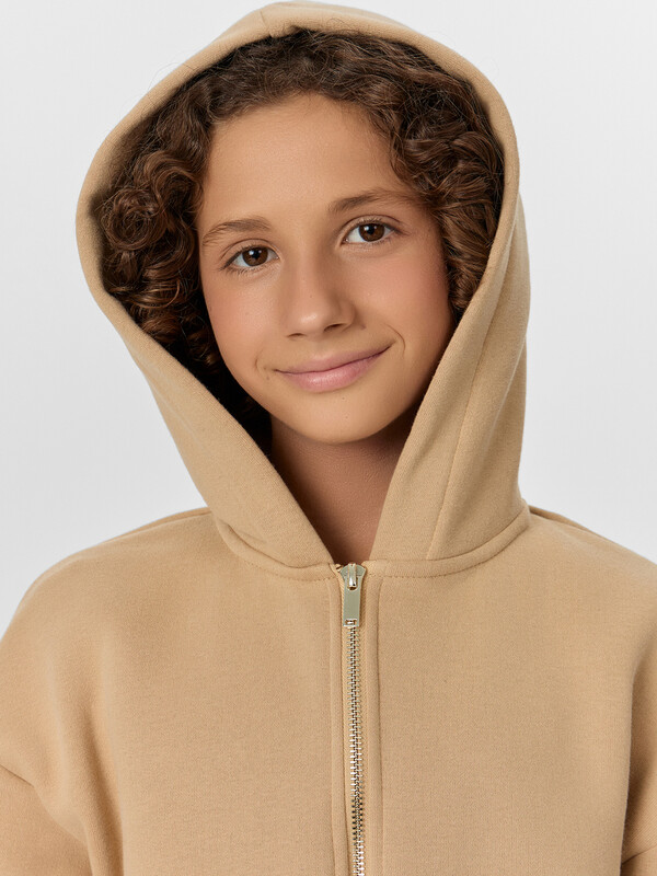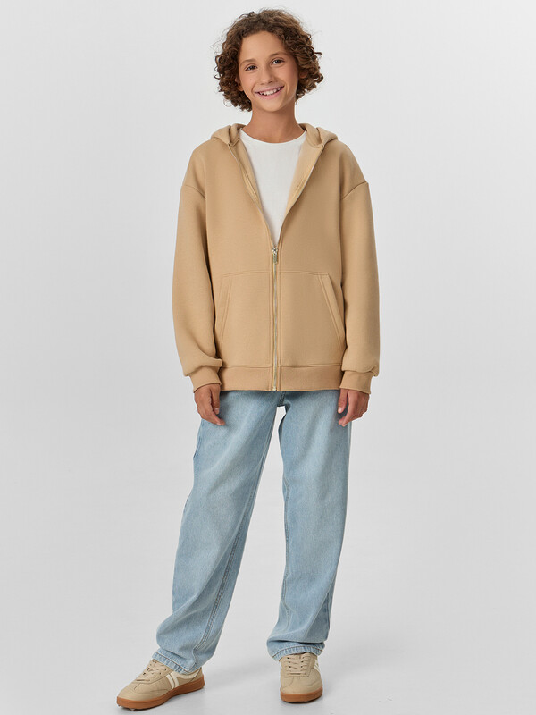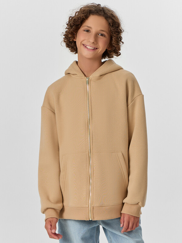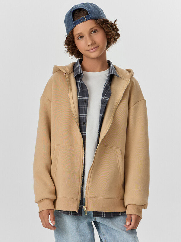 Толстовка для мальчиков — идеальный выбор для активных прогулок, школы или отдыха дома. Модель свободного силуэта с удобным капюшоном обеспечивает свободу движений и защищает от ветра и прохлады. Горловина округлой формы, спущенное плечо и длинные рукава с эластичными манжетами из рибаны создают расслабленный и современный образ. Центральная застежка на молнию делает толстовку практичной и удобной в носке, а накладные карманы кенгуру добавляют функциональности и уюта. Эластичный пояс из рибаны мягко фиксирует изделие, не сдавливая и не ограничивая движения. Толстовка выполнена из футера с мягким подчесом — теплого, приятного к телу материала, который отлично сохраняет тепло и выдерживает активную носку. Это универсальная и стильная вещь, которая станет любимой в гардеробе вашего ребенка. Подходит для любого сезона и легко сочетается с джинсами, спортивными брюками или шортами.