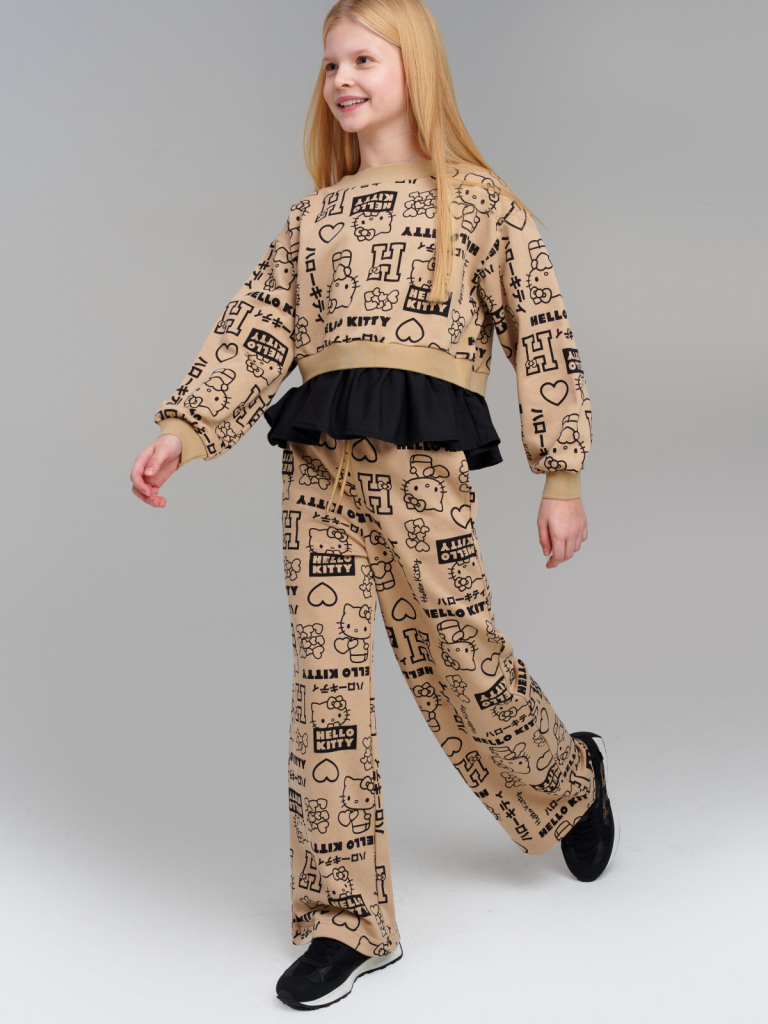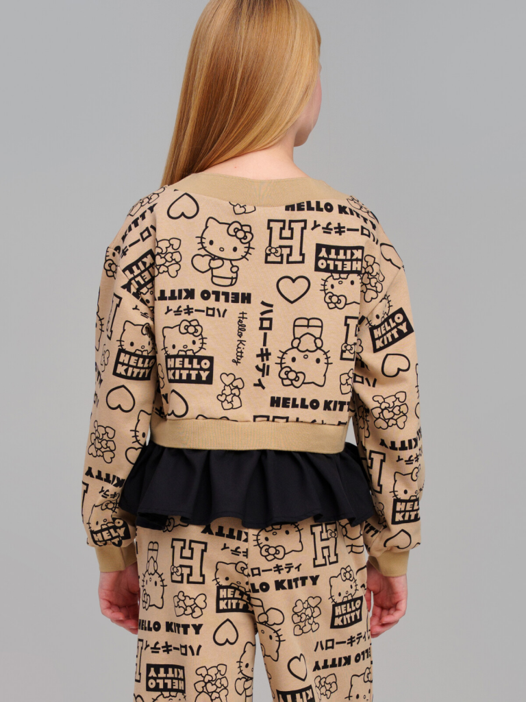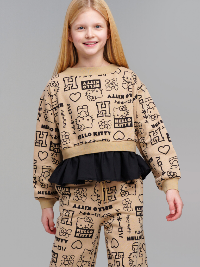 > Толстовка трикотажная для девочек бежевый,черный