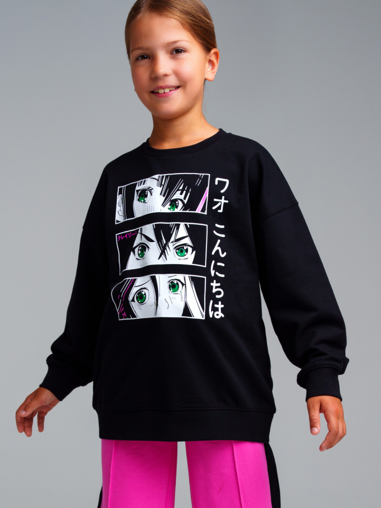 Свитшот из футера с начесом. Высокое содержание хлопка. Манжеты и низ изделия в эластичный рубчик. Силуэт oversize.