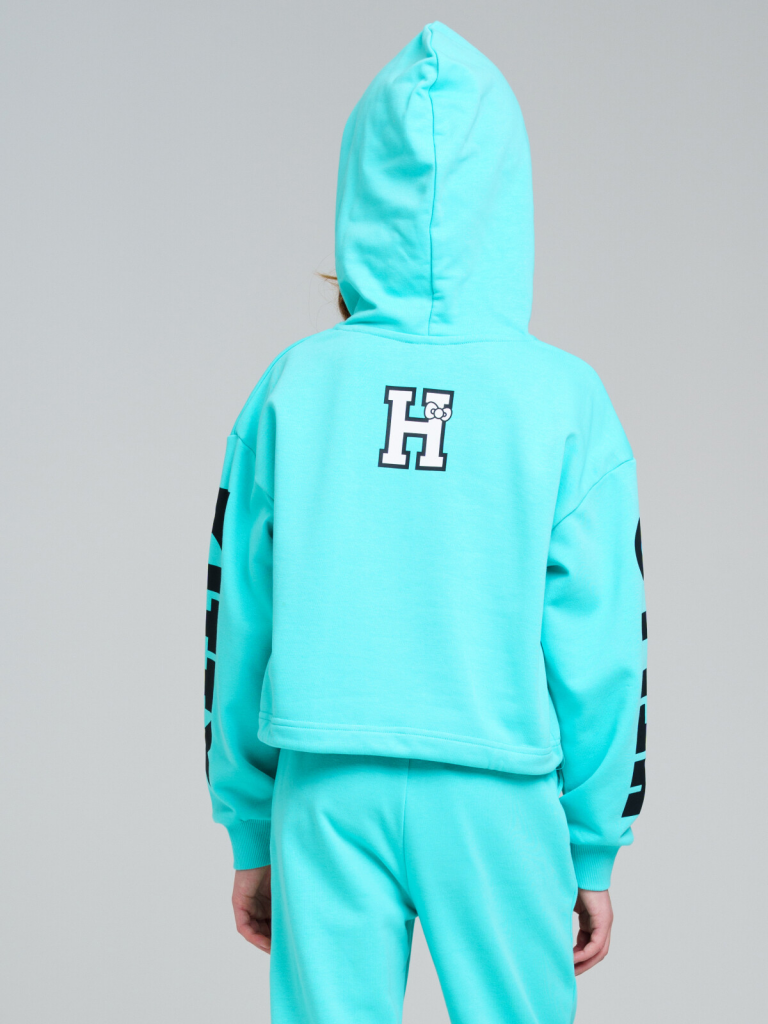 Худи для девочки подростка. Толстовка с высоким содержанием хлопка. Манжеты в эластичный рубчик. Утяжка шнурком по низу изделия. Модель выполнена из качественного и приятного на ощупь трикотажа.