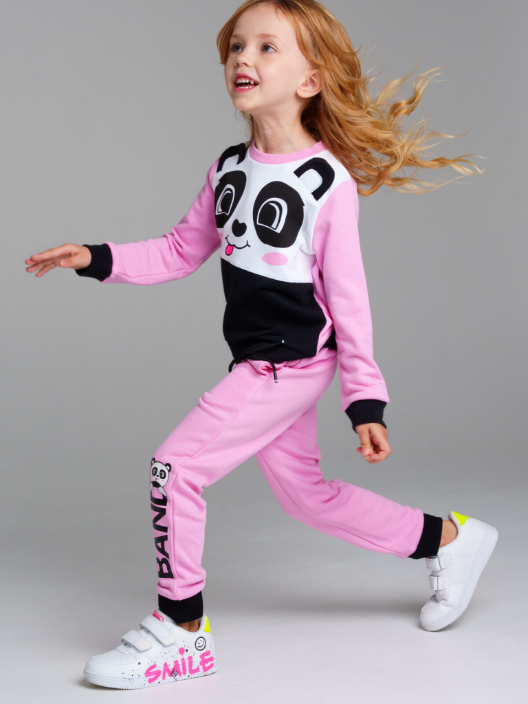 > Толстовка трикотажная для девочек светло-розовый,черный,белый