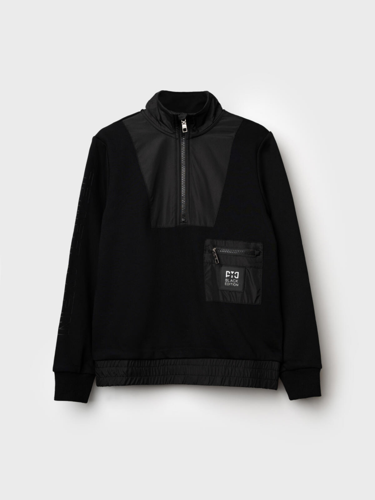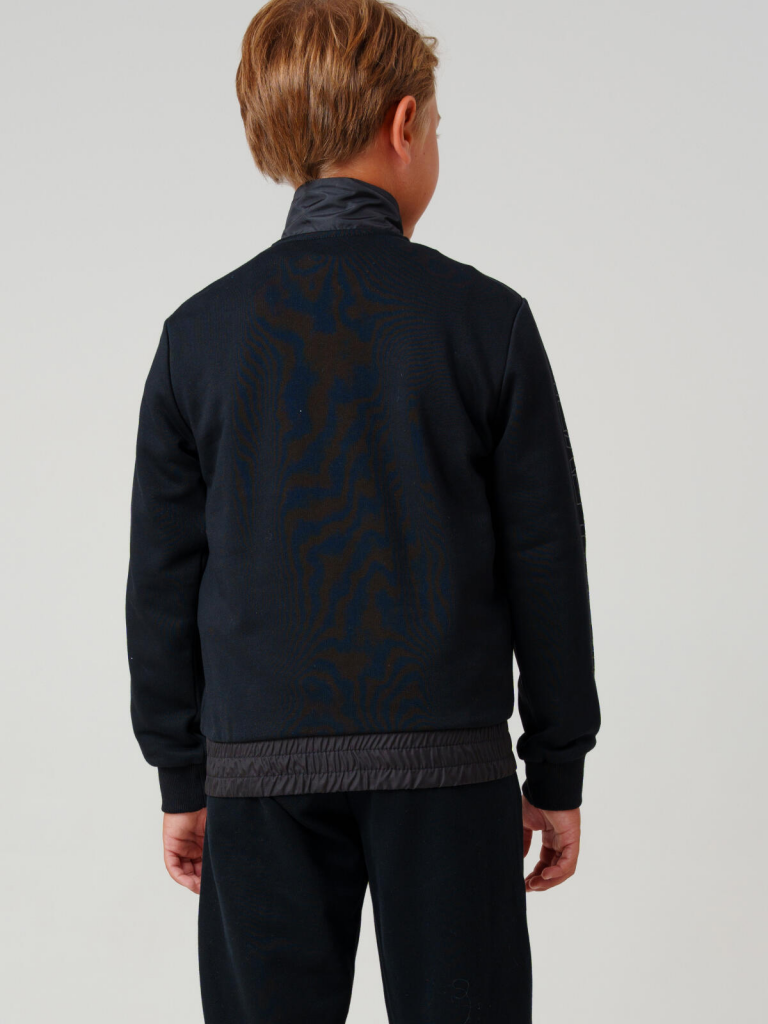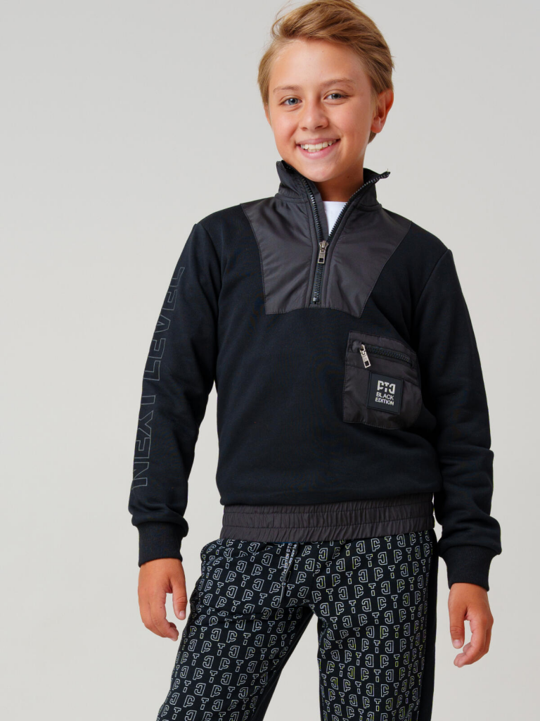 Стильная толстовка на молнии для мальчика подростка от PlayToday — универсальная школьная и спортивная одежда, которая подойдёт для повседневной носки, прогулок и активностей. Эта модная школьная толстовка сделана из мягкого хлопкового футера без начёса, что обеспечивает комфорт и свободу движений в течение дня.Преимущества модели:+ застёжка на молнию — удобно надевать и снимать даже в школе и на прогулке+ натуральный хлопковый футер без начёса — дышащий, комфортный и гипоаллергенный материал для подростков+ два кармана — практично для школы и улицы, можно положить телефон или мелочи+ стильная отделка текстильной тканью — современный акцент в подростковом гардеробе+ универсальный чёрный цвет — легко комбинируется с брюками, школьными джинсами и спортивными штанамиКогда носить:Толстовка отлично подходит для школы, спорта, прогулок, активного отдыха и поездок. Можно использовать как школьную форму для мальчиков или как удобную спортивную одежду для подростков.Совет по стилю:Сочетайте толстовку с джинсами, брюками чинос или спортивными штанами PlayToday. Для завершённого образа добавьте кроссовки или школьные ботинки.Размеры: 128-176 см —подростковая для мальчика от 8 до 16 лет.Стильная толстовка для мальчиков от PlayToday — современная школьная одежда и модная часть подросткового гардероба.