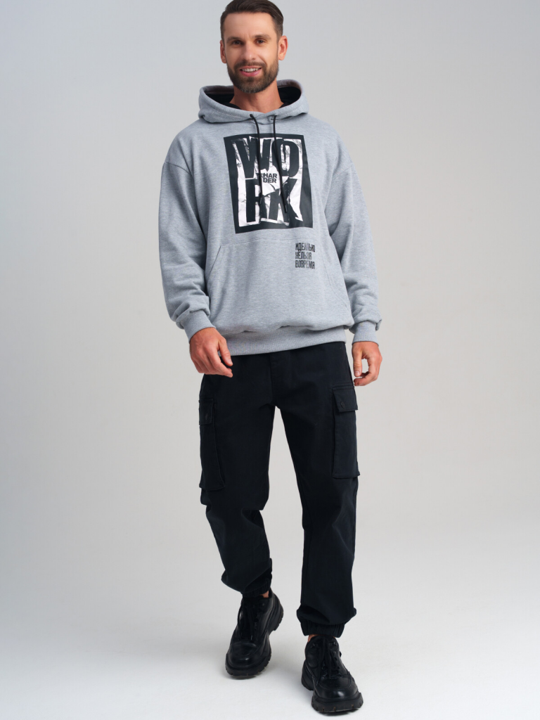 Худи мужское. Толстовка с высоким содержанием хлопка. Капюшон регулируется шнурком. Трикотажные манжеты. Карман-кенгуру. Модель выполнена из качественного и приятного на ощупь трикотажа.