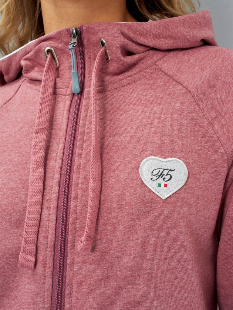 Стильная и уютная женская толстовка F5, изготовленная из хлопка, мягкая и приятная на ощупь, обладает хорошей гигроскопичностью и позволяет коже дышать. Модель с капюшоном и длинными рукавами не сковывает движений и обеспечивает наибольший комфорт. Объем капюшона регулируется при помощи кулиски. Манжеты рукавов и низ толстовки оснащены эластичными резинками. Спереди толстовка по всей длине застегивается на молнию. А также дополнена накладным карманом "кенгуру" и оформлена принтом с логотипом бренда.