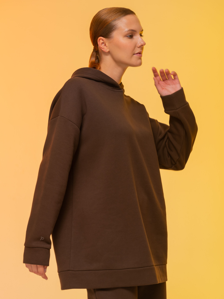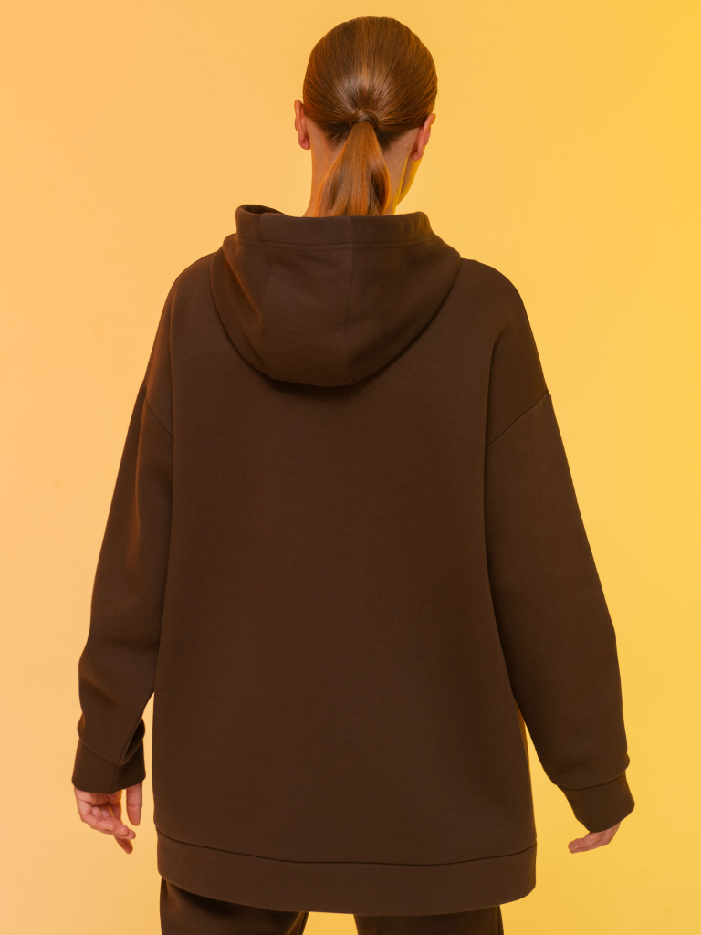 Женская толстовка худи оверсайз с капюшоном. Модная однотонная толстовка свободного силуэта стала обязательной частью современного женского гардероба. Это удобная базовая одежда для девушек и женщин из качественного трикотажного футера согреет в любую погоду и подарит комфорт в движениях. Свитшот женский подойдет для любой фигуры. Толстовки женские без замка, можно надевать как самостоятельный элемент, также с ней хорошо сочетается верхняя одежда и спортивная одежда. Объемная прямая и удлиненная утепленная толстовка худи с длинным широким рукавом, увеличенной проймой, без карманов будет стильно смотреться для повседневной носки на каждый день, для занятий спорта или просто для прогулок и холодных вечеров дома. Теплая кофта подарит уют и окутает теплом, это настоящий подарок для осени и зимы.