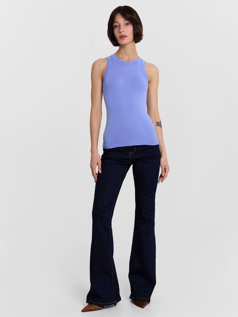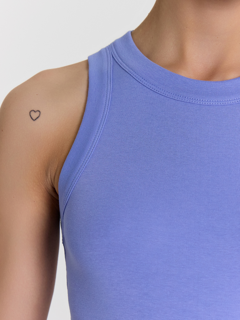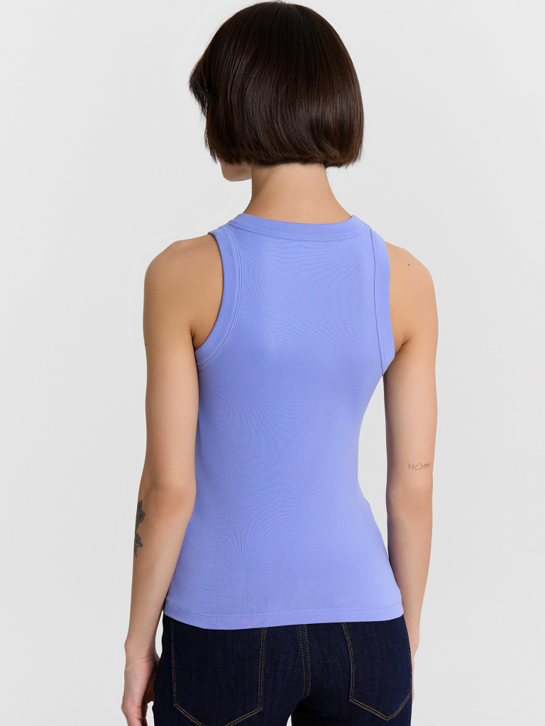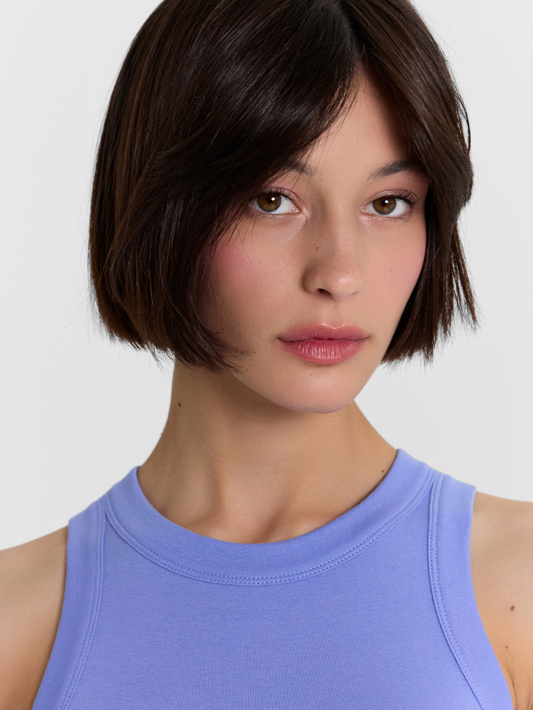 Горловина и проймы окантованы широкой бейкой из основного полотна.