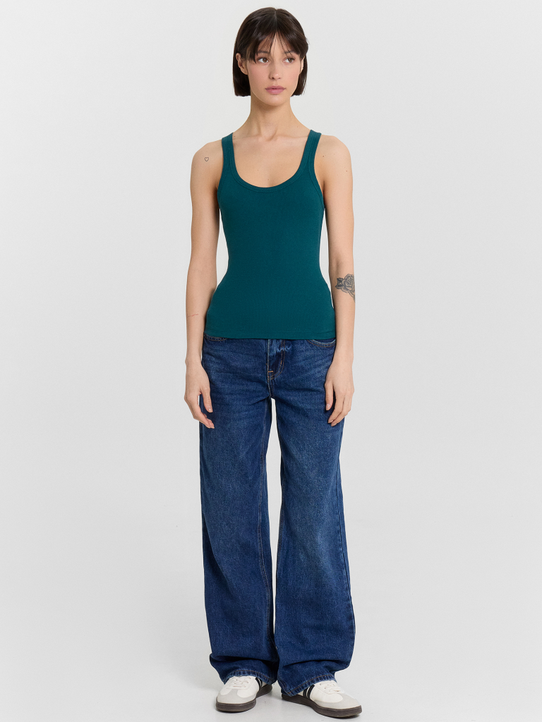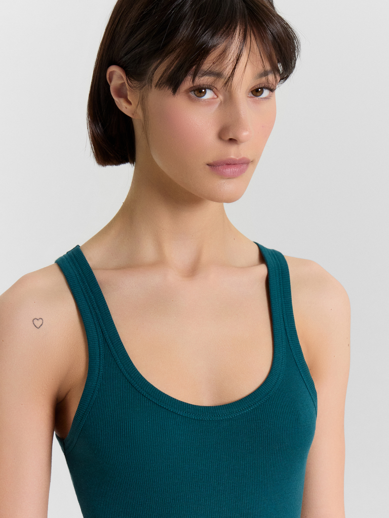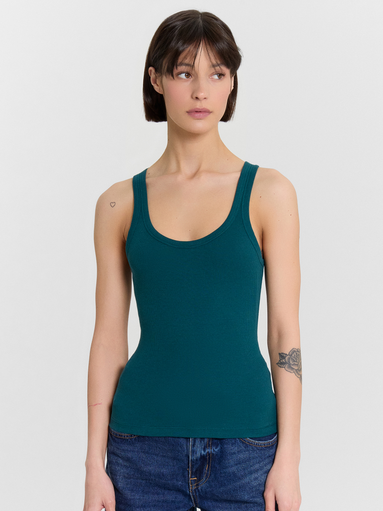 Топ женский прилегающего силуэта из трикотажного полотна рибана.