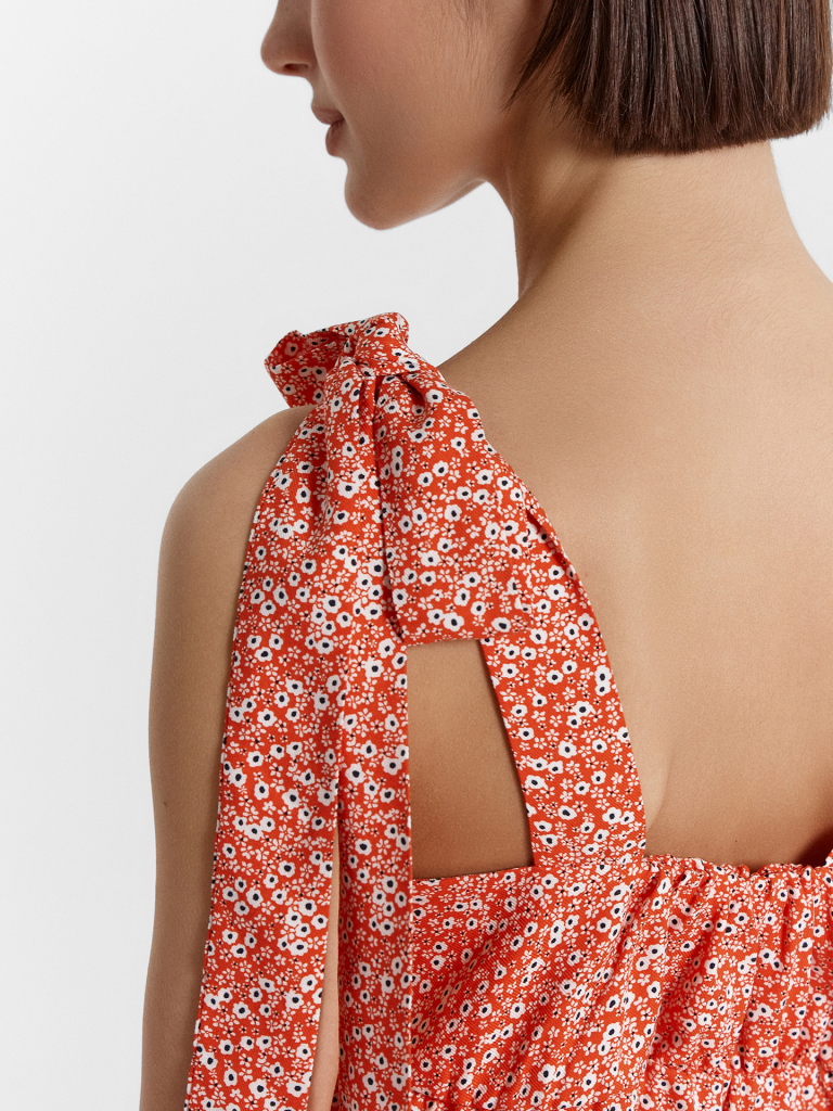 Этот нежный женственный топ — воплощение элегантности и романтичного стиля, идеально подходящий для летних образов. Широкие бретели, завязывающиеся в изящные банты, придают модели утонченность и позволяют регулировать посадку, создавая игривый акцент Лиф и спинка собраны на эластичную тесьму, что обеспечивает комфортную посадку и подчеркивает силуэт, делая его женственным и грациозным. Лиф на подкладке из основного полотна добавляет плотность и удобство, помогая сохранить форму и обеспечивая надежную поддержку. Нижний срез обработан швом вподгибку с закрытым срезом, что делает изделие аккуратным и долговечным, защищая ткань от износа. Выполненный из легкой и струящейся вискозы, топ мягко ложится на кожу, приятен в носке и обладает хорошей воздухопроницаемостью, позволяя чувствовать себя комфортно даже в жаркие дни. Благодаря универсальному дизайну, модель легко сочетается с юбками, брюками и джинсами, создавая стильные и утонченные образы. Этот топ станет незаменимым элементом летнего гардероба, добавляя нотки романтики и нежности в любой комплект!
