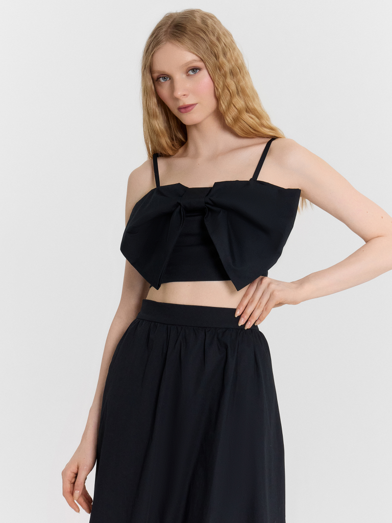 Этот женственный топ с крупным бантом — воплощение элегантности и летней легкости. Модель прилегающего силуэта подчеркивает фигуру, а тонкие регулируемые бретели позволяют идеально подогнать посадку под индивидуальные параметры. Крупный декоративный бант становится выразительным акцентом, придавая образу романтичность и утонченность. Благодаря универсальному дизайну, такой топ уместен как на вечернем мероприятии, так и в повседневных летних образах — его легко сочетать с юбками, брюками или джинсами с высокой посадкой. Спинка оформлена сборкой на эластичную тесьму, что не только добавляет комфорта, но и обеспечивает надежную посадку. Подкладка из основного полотна делает изделие более плотным и удобным в носке, исключая просвечивание. Изделие выполнено из натурального хлопка — дышащего, мягкого и приятного к телу материала, который идеально подходит для жаркой погоды. Он не вызывает раздражения, хорошо впитывает влагу и сохраняет свою первоначальную форму. Этот топ станет изюминкой летнего гардероба и отличным выбором для тех, кто ценит стиль, комфорт и выразительные детали.