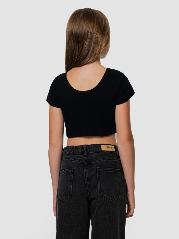Укороченный топ для девочек — универсальный элемент гардероба, сочетающий комфорт и стиль. Благодаря прилегающему силуэту, он подчеркивает фигуру, но при этом не стесняет движения, что особенно важно для активных детей. Круглая горловина с окантовкой из основного материала выглядит аккуратно и помогает сохранить форму даже после многократных стирок. Швы вподгибку на рукавах и по низу изделия придают аккуратность и повышают износостойкость. Материал — рибана — отличается эластичностью, мягкостью и воздухопроницаемостью: он приятно ощущается на теле и не вызывает раздражения. Такой топ отлично подходит как для школы, так и для прогулок, танцевальных занятий или домашнего отдыха. Его легко комбинировать с джинсами, спортивными брюками или юбками, создавая как повседневный, так и нарядный образ.