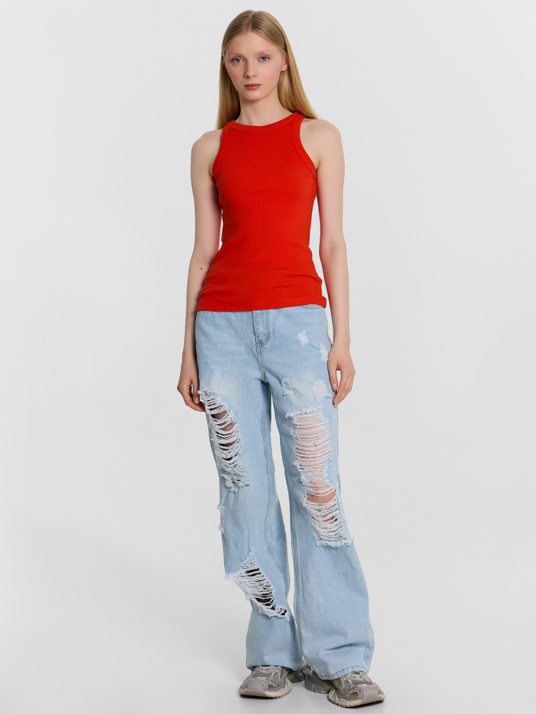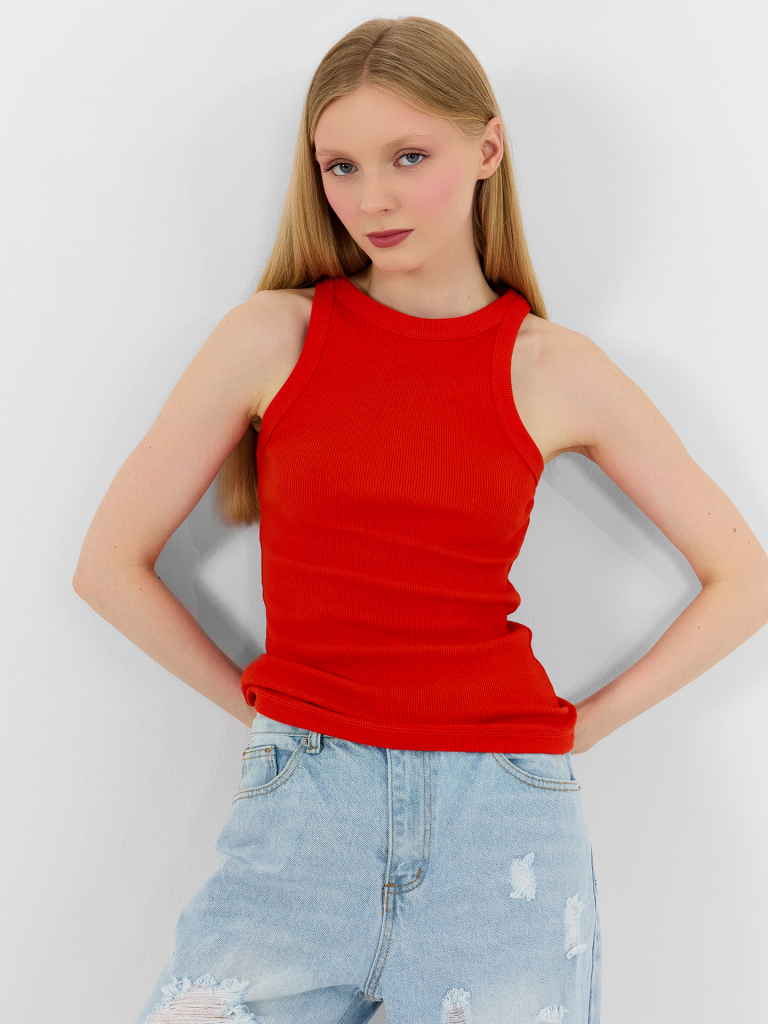 Стильный топ из трикотажной рибаны с фактурой в рубчик — прекрасный выбор для создания универсальных и элегантных образов! Прилегающий силуэт подчеркивает фигуру, а длина до линии бедер делает модель удобной и подходящей для любой ситуации. Округлый вырез добавляет классической простоты и изящества, что позволяет легко сочетать топ как с повседневными джинсами, так и с нарядными юбками. Материал из трикотажной рибаны отличается мягкостью, эластичностью и комфортом, оставаясь при этом стильным благодаря текстуре в рубчик. Такой топ станет базовым элементом гардероба, который идеально впишется в любую комбинацию, от делового до спортивного или вечернего наряда! Настоящий must-have для стильных и практичных решений.