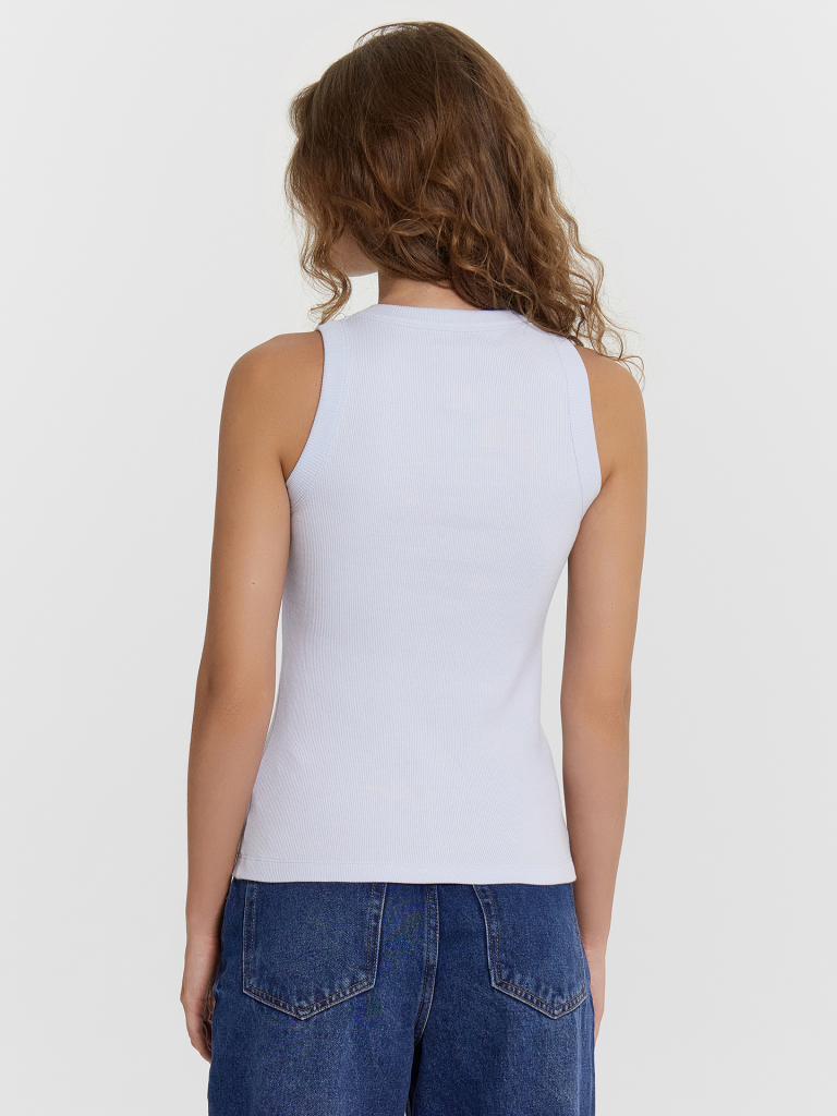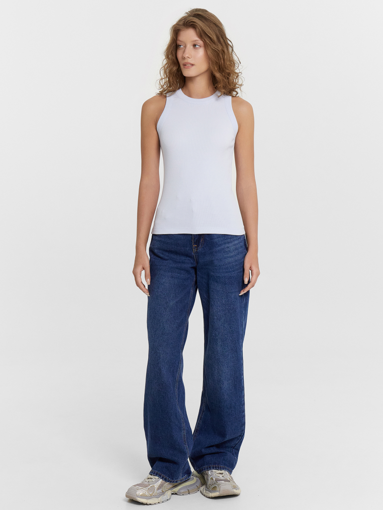 Горловина и проймы окантованы широкой бейкой из основного полотна.