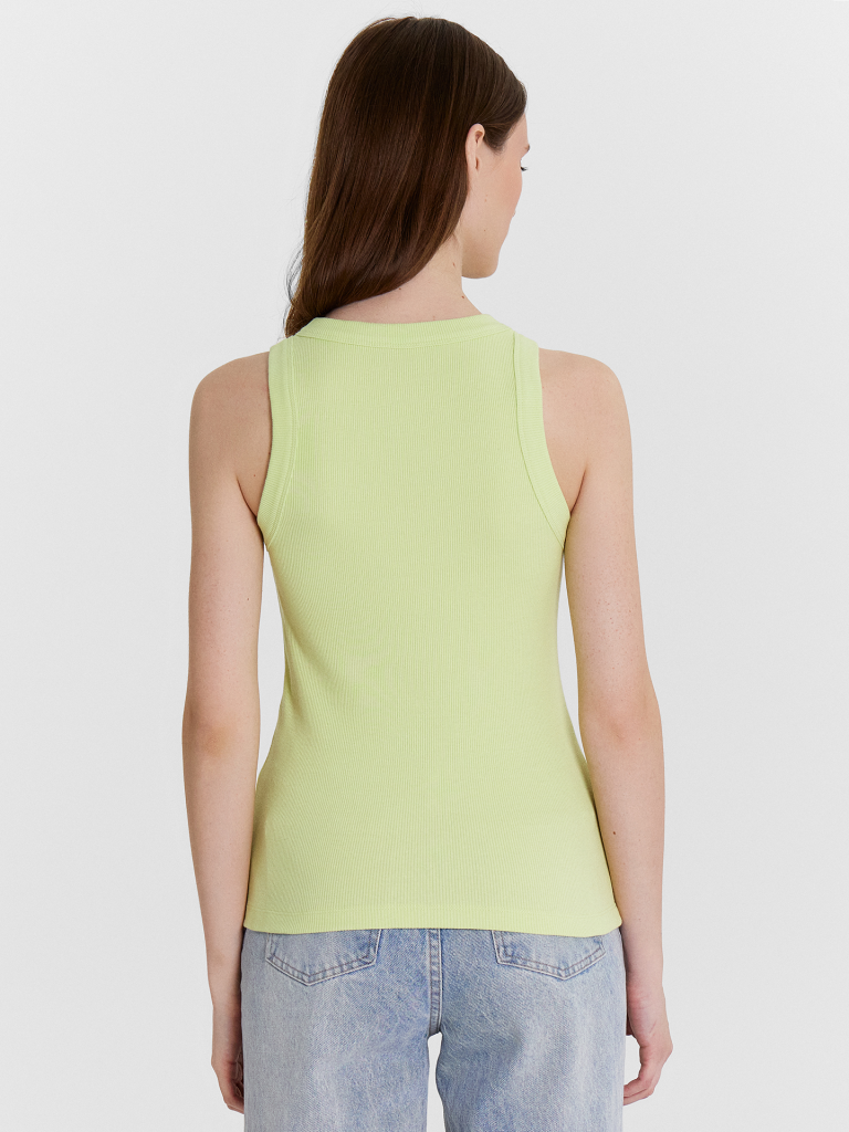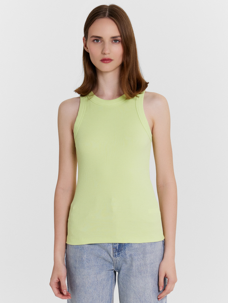 Горловина и проймы окантованы широкой бейкой из основного полотна.