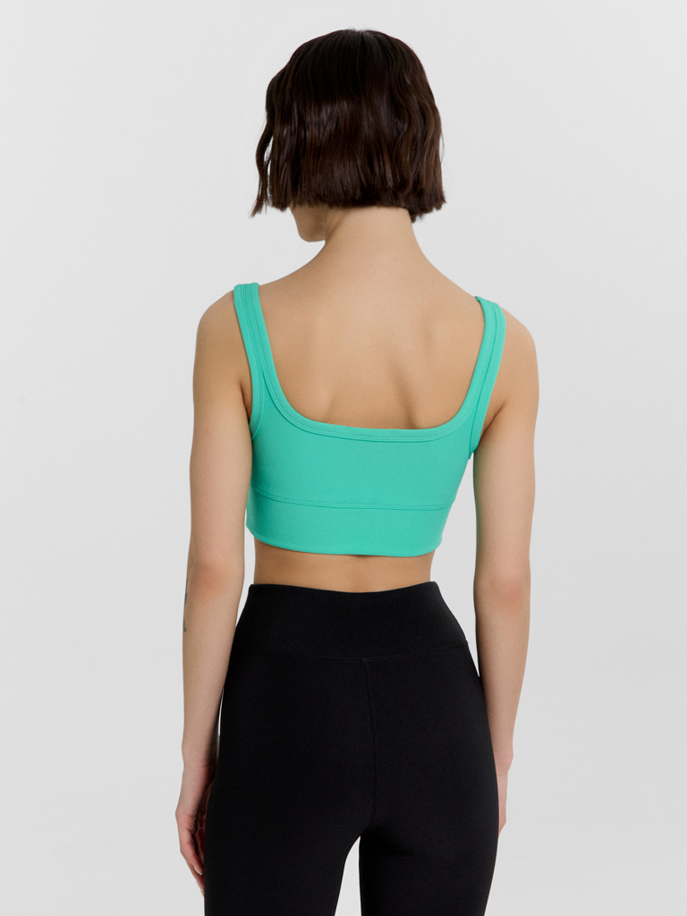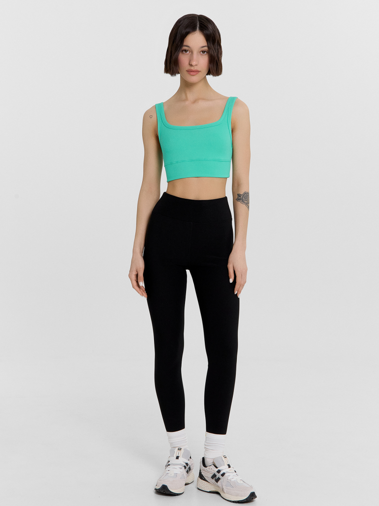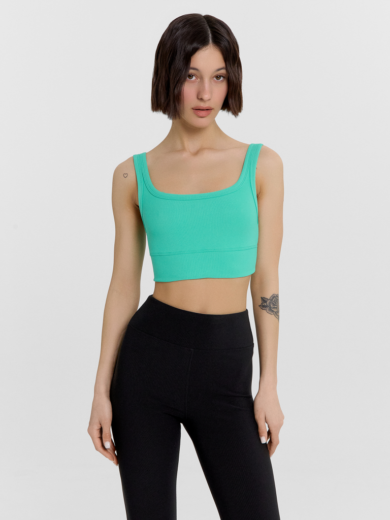 Топ облегающего силуэта, укороченный. Горловина формы каре.