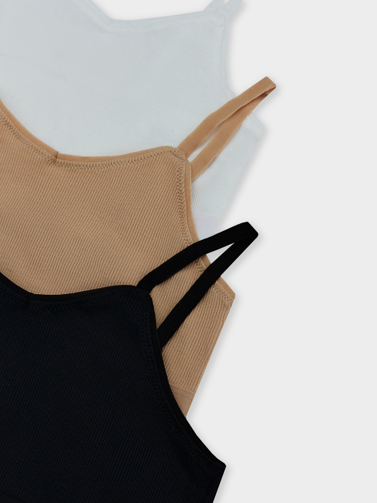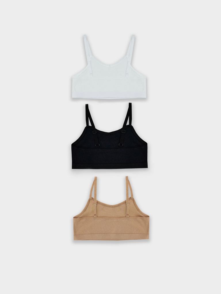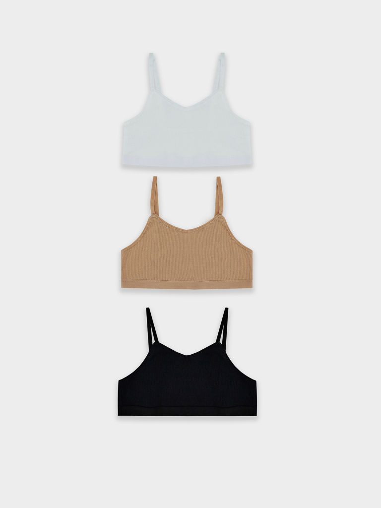 Хлопковое бюстье прилегающего силуэта для девочек. Выполнено из легкой и приятной к телу трикотажной рибаны. Вырез горловины и проймы окантованы эластичной тесьмой. На бретелях есть кольца-регуляторы. По нижнему краю бюстье расположена удобная и стильная жаккардовая тесьма. Идеально!