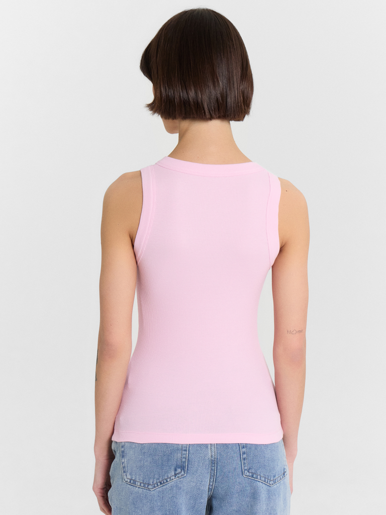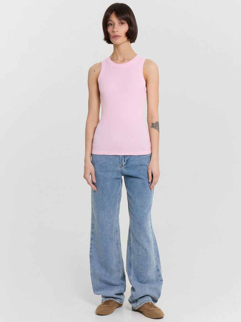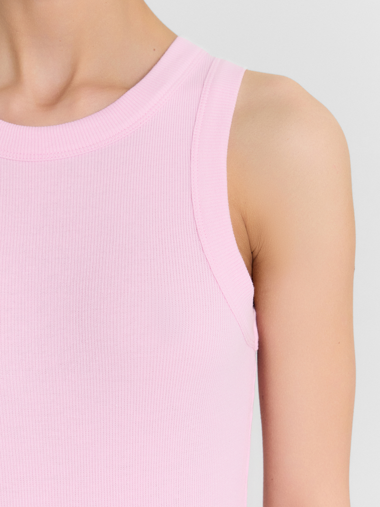 Горловина и проймы окантованы широкой бейкой из основного полотна.