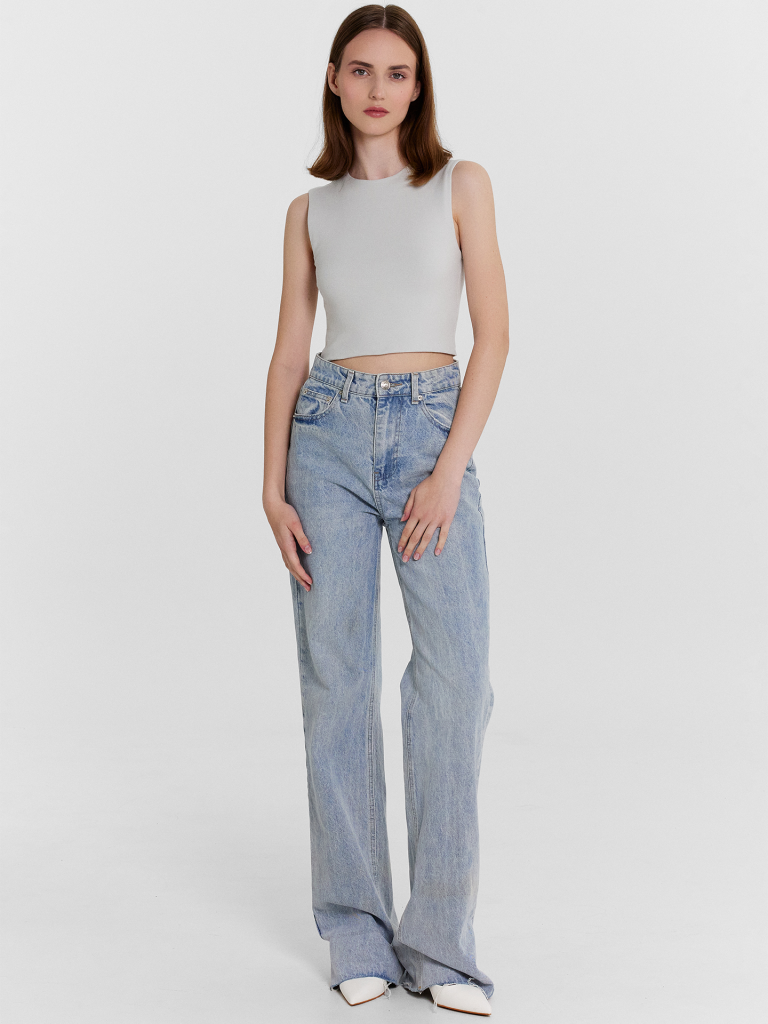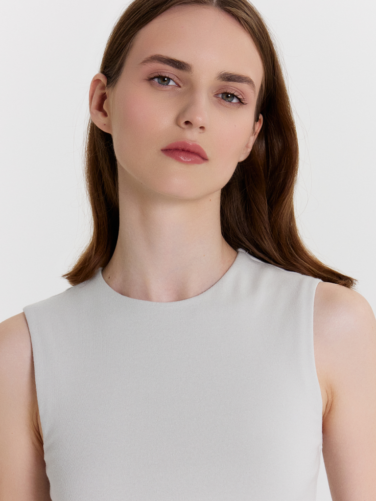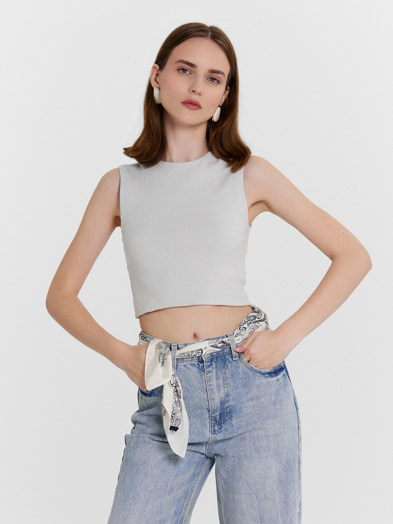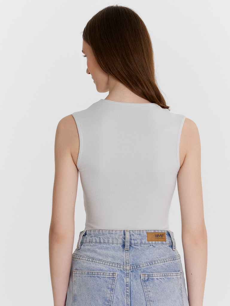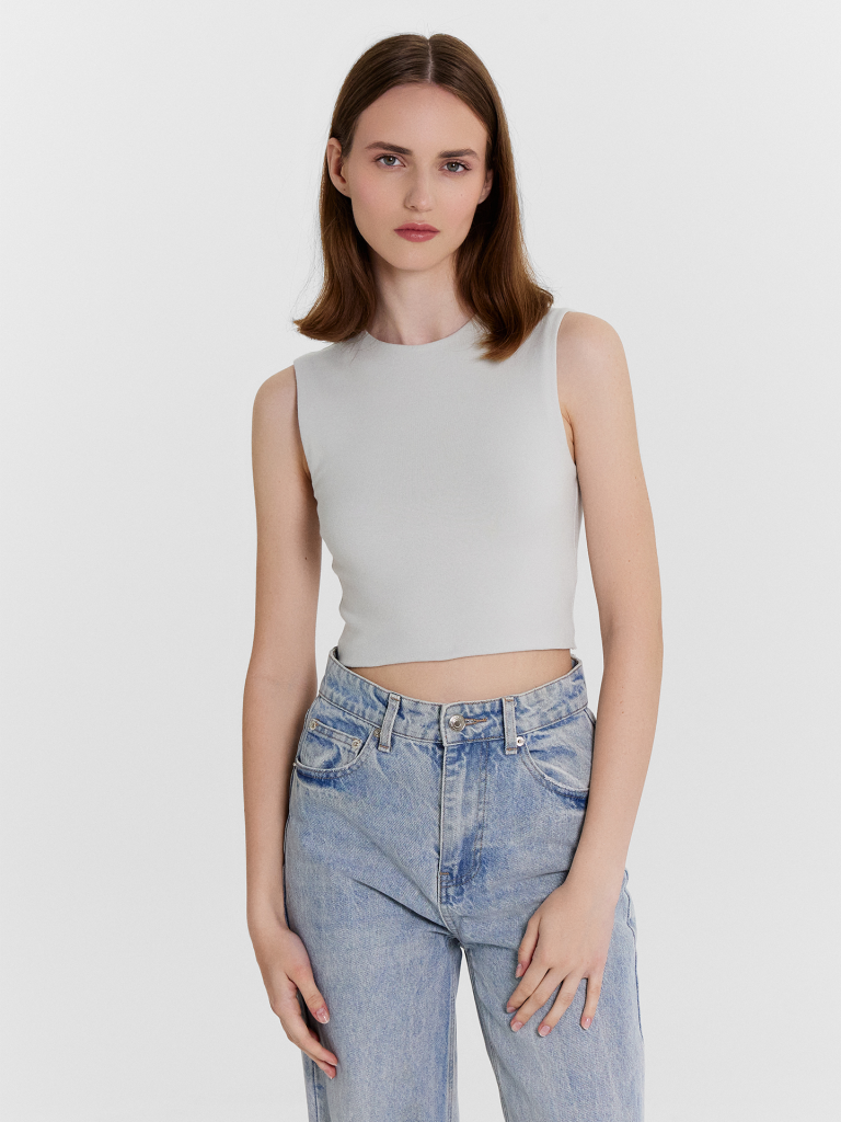 Топ женский прилегающего силуэта из трикотажного полотна рибана. Горловина круглой формы.