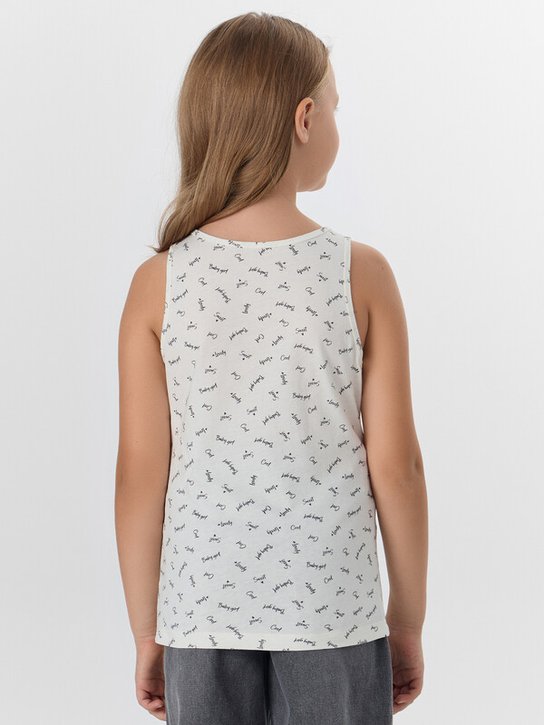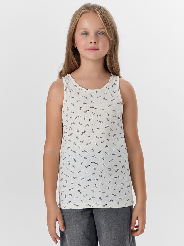 Майка для девочек, выполненная из трикотажной кулирки. Длина до середины бедер. Силуэт полуприлегающий. Горловина круглая. Универсальная майка!