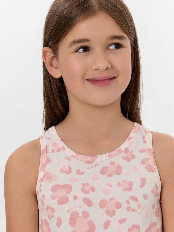 Слегка углубленный вырез горловины добавляет элегантности, а нежные оттенки делают майки стильным элементом гардероба. Универсальность моделей позволяет носить их как самостоятельный топ в теплое время года, так и в качестве нижнего белья под одежду в прохладный сезон. Майки подойдут для садика, прогулок, занятий спортом или сна — они дарят комфорт в любой ситуации.