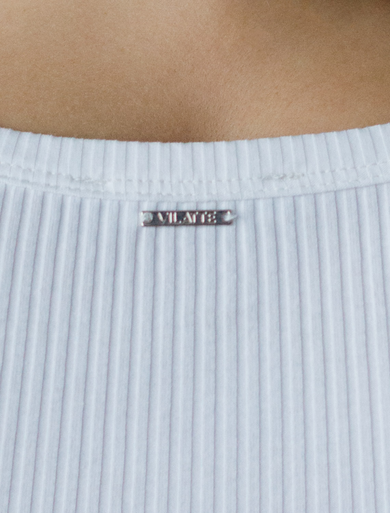 Топ выполнен из трикотажа в широкий рубчик. Эластичный хлопковый трикотаж сидит по фигуре, не сковывает движений и очень комфортный в носке. Фактура вертикальных полос визуально стройнит и вытягивает силуэт. Базовое изделие хорошо впишется в любой гардероб. Идеально подходит для многослойных образов.