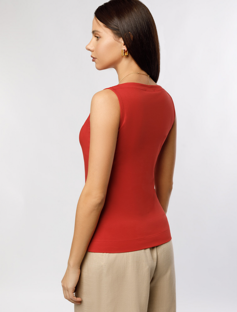 Топ выполнен из премиального хлопка с эластаном. Лаконичная базовая модель впишется в любой гардероб и дополнит многослойные образы. Материал изделия хорошо тянется и гарантирует идеальную посадку по фигуре. Из украшений только металлическим логотипом бренда.