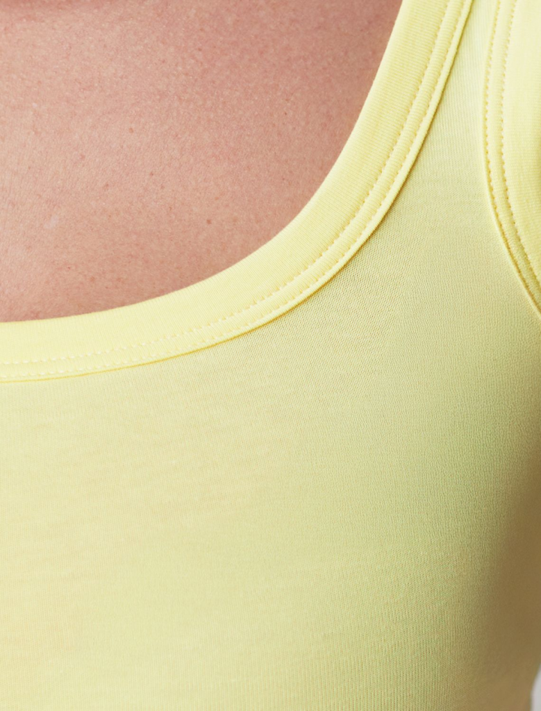 Стильный и женственный топ лимонного цвета из премиального хлопка станет отличным дополнением вашего гардероба. Актуальный дизайн и однотонное исполнение позволяют легко комбинировать его как с деловым костюмом, так и с повседневными вещами. Облегающий силуэт идеально подчеркивает фигуру, не сковывая движений, обеспечивая комфорт на весь день. Дышащая ткань с добавлением эластана приятно прилегает к телу и прекрасно тянется, что делает изделие подходящим для девушек и женщин всех возрастов. Эта базовая майка подойдет на все сезоны, в том числе, как нижний слой. Майка подходит для больших, включая 56 размер, и маленьких размеров, а также смотрится изящно как на высокий рост, так и на низкий. Благодаря своей универсальности топ будет уместен на работе, деловых встречах или в повседневном образе. Он станет гармоничным дополнением, сохраняя элегантность даже в офисной обстановке. Незаменим в поездки, в путешествия, на отдых.