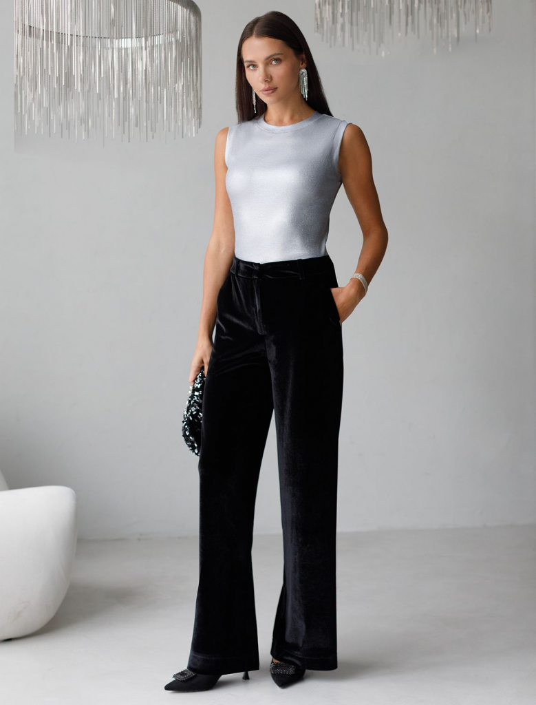 Эффектный топ серебристого цвета с закрытым декольте идеально подходит для офиса, вечерних мероприятий и повседневной носки. Качественный материал содержит натуральный хлопок, благодаря чему ткань мягкая, дышащая и приятная на ощупь. Добавление эластана обеспечивает эластичность и позволяет изделию хорошо садиться на любую фигуру, в том числе и большие размеры. Ткань в мелкий рубчик вытягивает силуэт. Формоустойчивость материала сохраняет аккуратный внешний облик даже после многочисленных стирок.Трендовый матовый металлизированный эффект создает сияющий блеск без излишней яркости — это делает топ нарядным и красивым как для праздничного события, так и для повседневной носки в комплекте с деловым костюмом или джинсами. Широкие лямки обеспечивают дополнительный комфорт в течение всего дня. Круглый ворот подчеркивает линию шеи, добавляя образу изысканности.