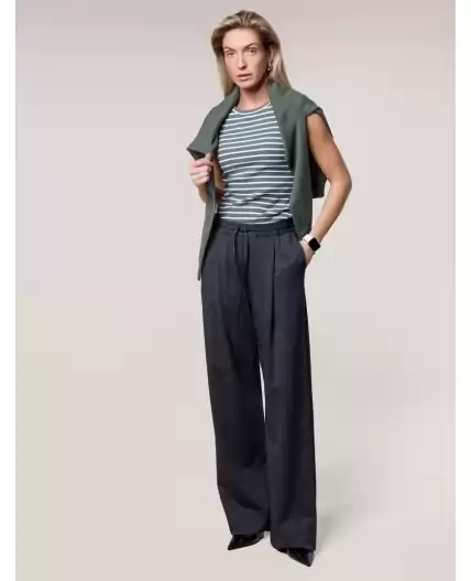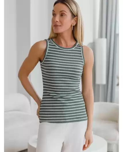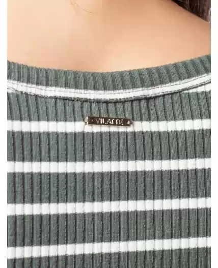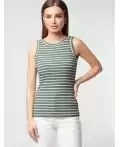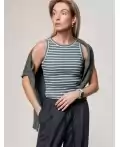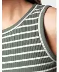 Топ выполнен из трикотажа в широкий рубчик. Премиальное качество хлопковых волокон и наличие эластана в составе изделия, обеспечивают абсолютный комфорт, не сковывая движений. Изделие обладает хорошей формоустойчивостью и надолго сохранит свой безупречный внешний вид. Металлический логотип бренда.