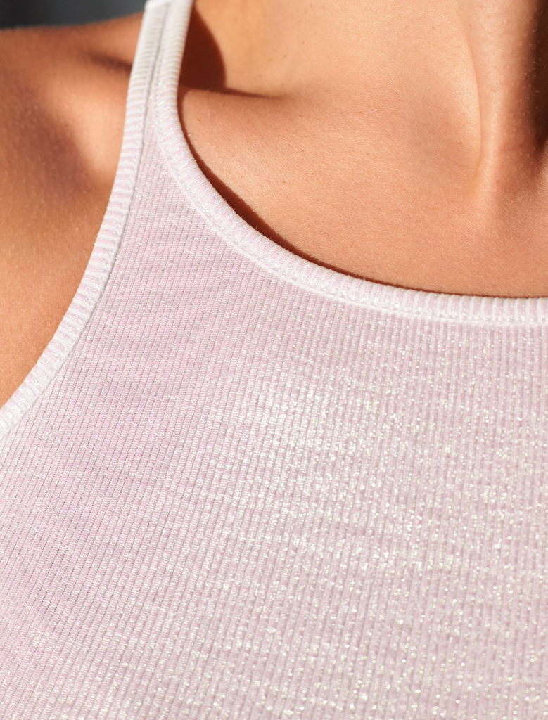 Эффектный топ перламутрового цвета из мягкого хлопка с эластаном представлен в стильном исполнении с матовым покрытием металлик. Мелкий рубчик визуально вытягивает силуэт и подчеркивает фигуру, делая образ более стройным и аккуратным. Круглый ворот и суженные лямки акцентируют внимание на линии ключиц, делая образ утонченным и изысканным, Благодаря деликатному блеску топ подходит для тех, кто ценит утонченность и стремится добавить в образ немного сияния без перебора - это отличный вариант топа для любительниц минимализма.Натуральный дышащий материал обеспечивает комфортный микроклимат на протяжении всего дня, не вызывая дискомфорта даже при длительном ношении. Износостойкое покрытие сохраняет блеск и привлекательность майки несмотря на частое использование. Топ прекрасно сочетается с деловым костюмом или аксессуарами, позволяя создавать как строгие, так и вечерние образы.