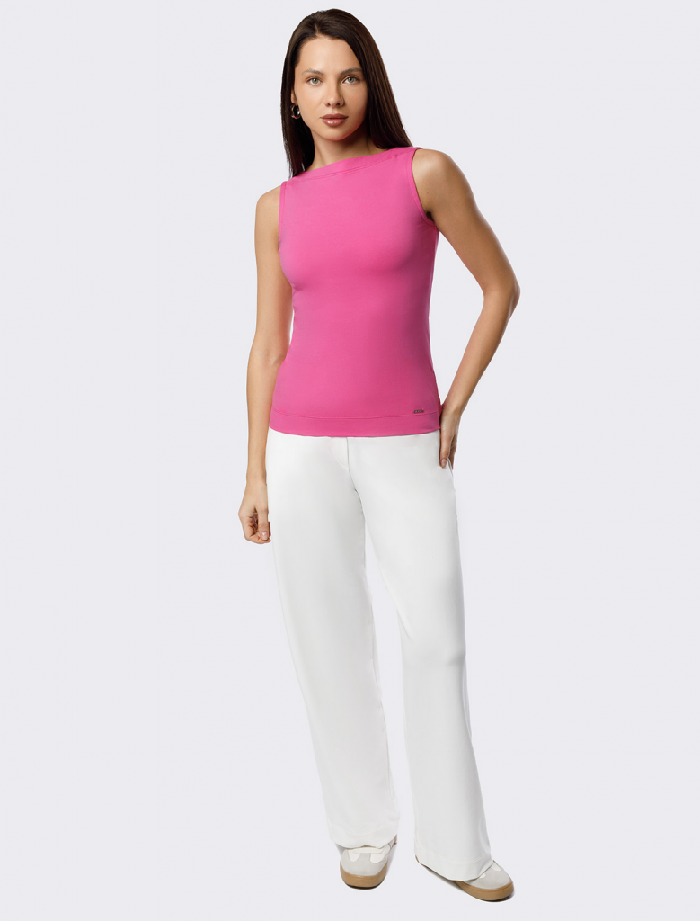 Топ выполнен из премиального хлопка с эластаном. Лаконичная базовая модель впишется в любой гардероб и дополнит многослойные образы. Материал изделия хорошо тянется и гарантирует идеальную посадку по фигуре. Из украшений только металлическим логотипом бренда.