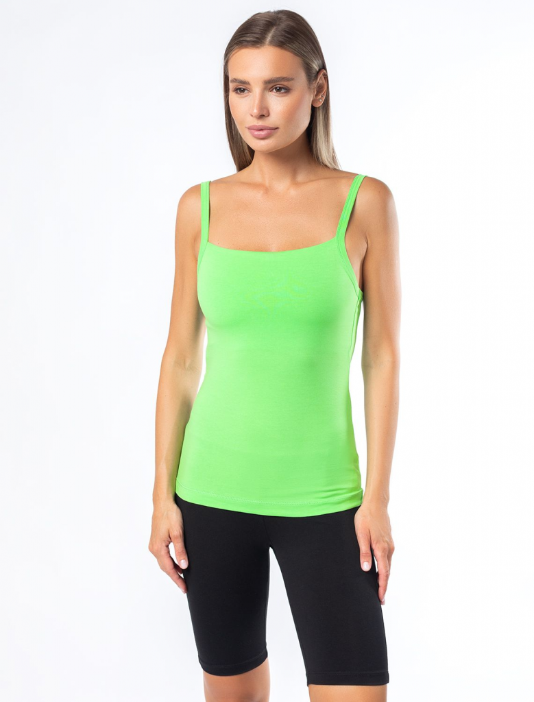 Базовый топ регулируемых бретелях из премиального хлопка. Двуслойная зона бра.Линия декольте образована посредством сгиба полотна без отсрочки и закреплением обоих слоев в шве проймы. Прямой силуэт подходит любому типу фигуры. Квадратный вырез горловины - тренд этого сезона. На спине расположена металлическая нашивка - логотип бренда. Самое высокое качество хлопковых волокон с добавлением ПУ. Идеально держит форму и сохраняет внешний вид в течение долговременного использования.