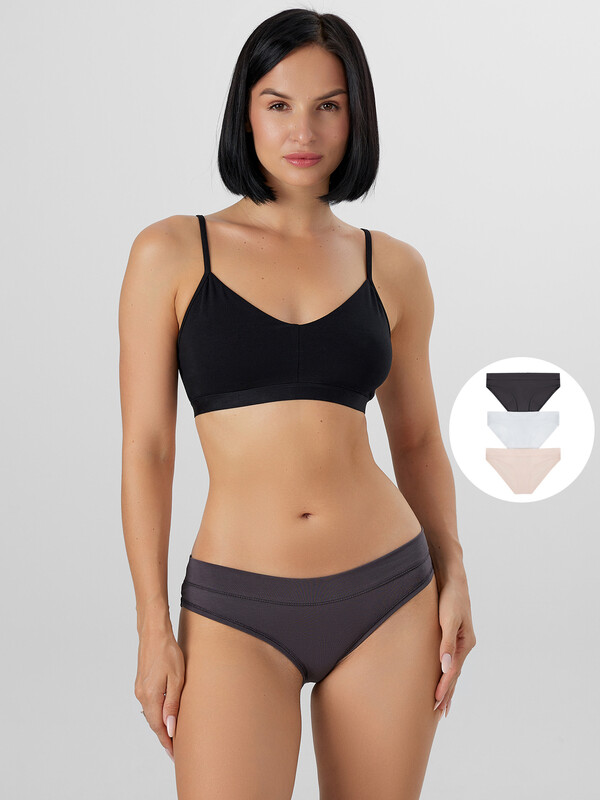 Набор женских трусиков слипов (3 шт.) разных цветов из высококачественного хлопка. Трусы женские слипы хлопковые или, как их еще называют, слип-бикини — это популярная модель женского белья. Невероятно удобные, благодаря своей невысокой посадке, они пользуются заслуженной любовью покупательниц. Изготовлены из натурального материала — дышащего, мягкого, гипоаллергенного. Помимо длительного и полного ощущения комфорта, материал отличается долговечностью. Продуманная анатомическая конструкция, плоские швы и деликатные резиночки делают эту модель подходящей для занятий спортом. Пригодятся и будущим мамам: низкая талия трусиков удобно помещается под растущим животиком и абсолютно не давит. Рекомендуем!