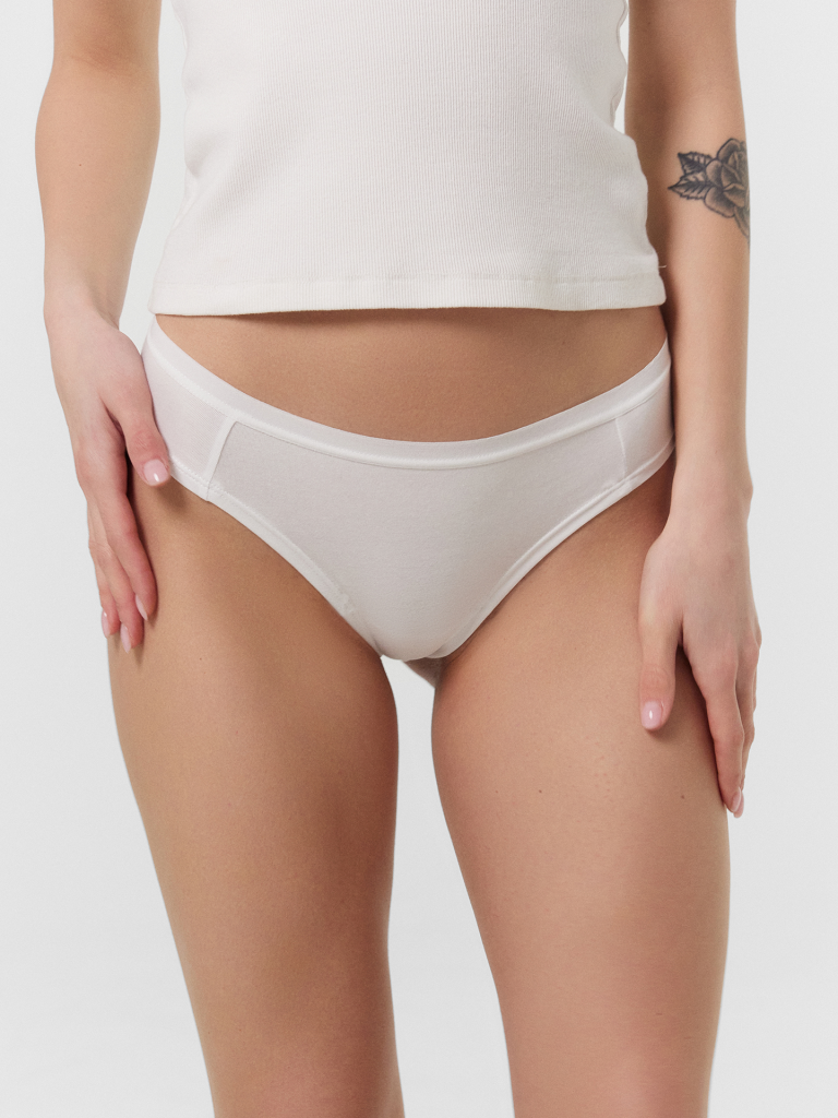 Хлопковые трусики-бразилиана из натурального, гипоаллергенного, дышащего полотна. Линия талии занижена. На верхнем срезе – тонкая эластичная тесьма, по ножкам – шов вподгибку. Почти не заметны под одеждой!