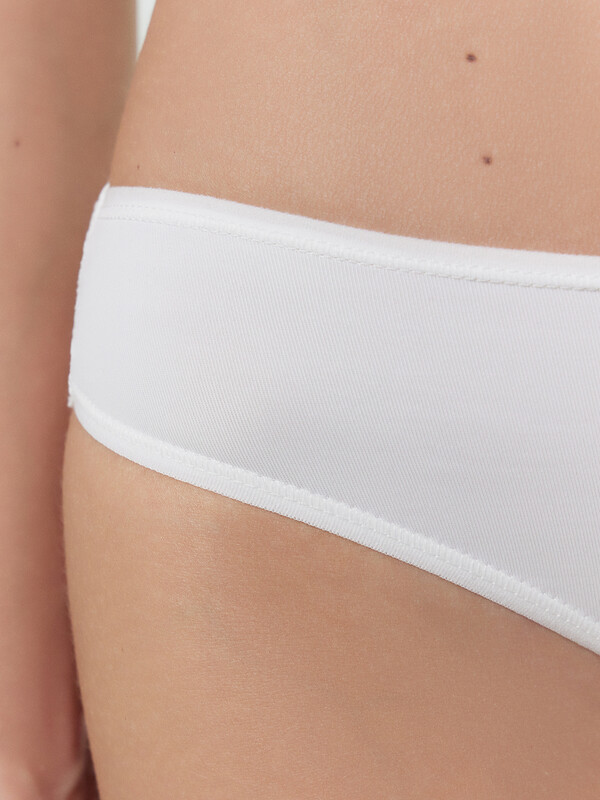 Комфортные слип-бикини из невесомой микрофибры и ажурного эластичного кружева на задней детали. Посадка по талии слегка занижена. На верхнем срезе и по ножкам – эластичная тесьма. Стильные трусики!