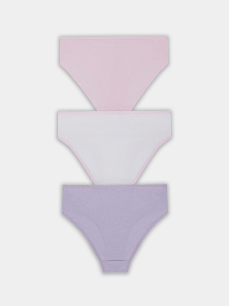 Трусы для девочек. Ластовица из трикотажного кулирного полотна. Задняя деталь цельнокроенная. Верхний и нижние срезы трусов окантованы лаваблем.