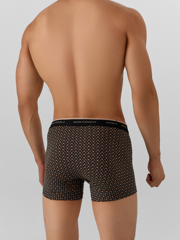 Черные мужские трусы-боксеры с узором — идеальное сочетание комфорта и стиля. Модель облегающего силуэта без боковых швов выполнена из мягкой хлопковой кулирки.