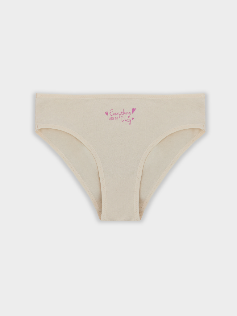 Трусы для девочек. Ластовица из трикотажного кулирного полотна. Задняя деталь цельнокроенная. Верхний и нижние срезы трусов окантованы лаваблем.
